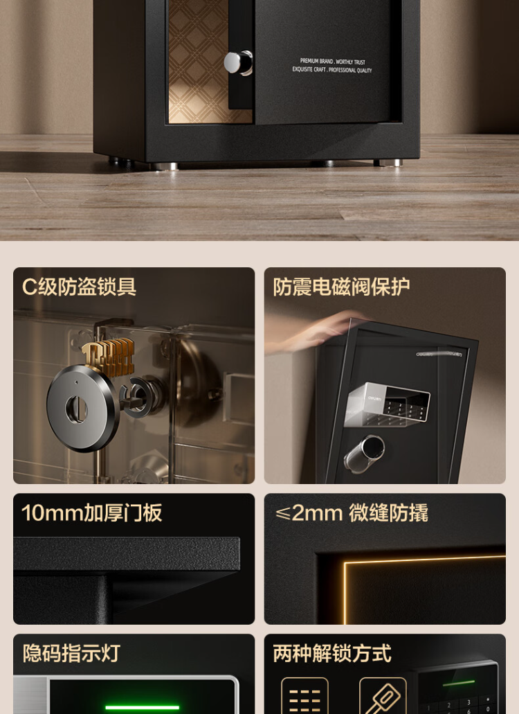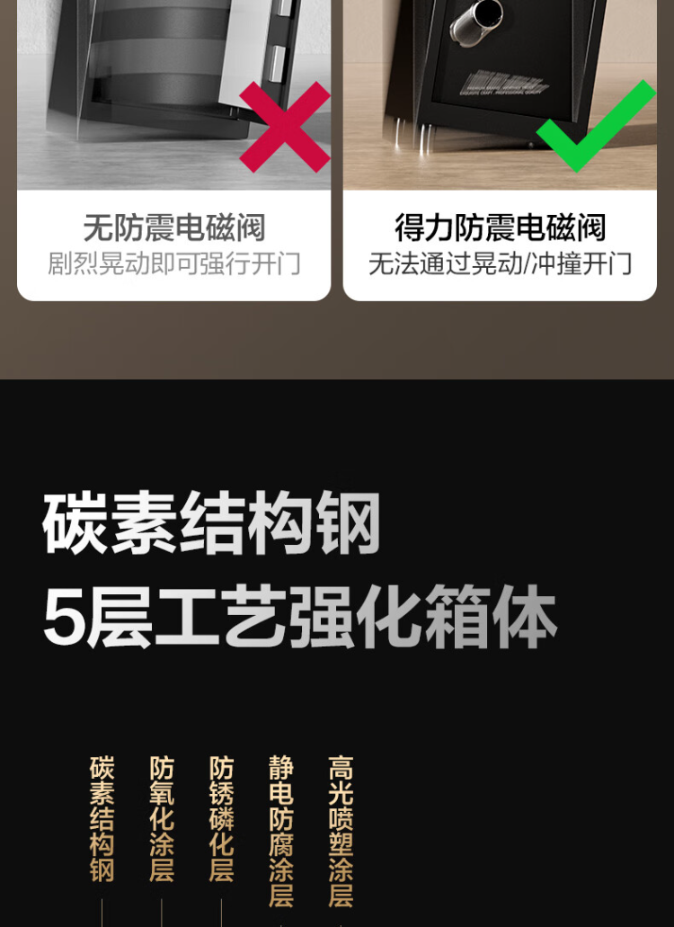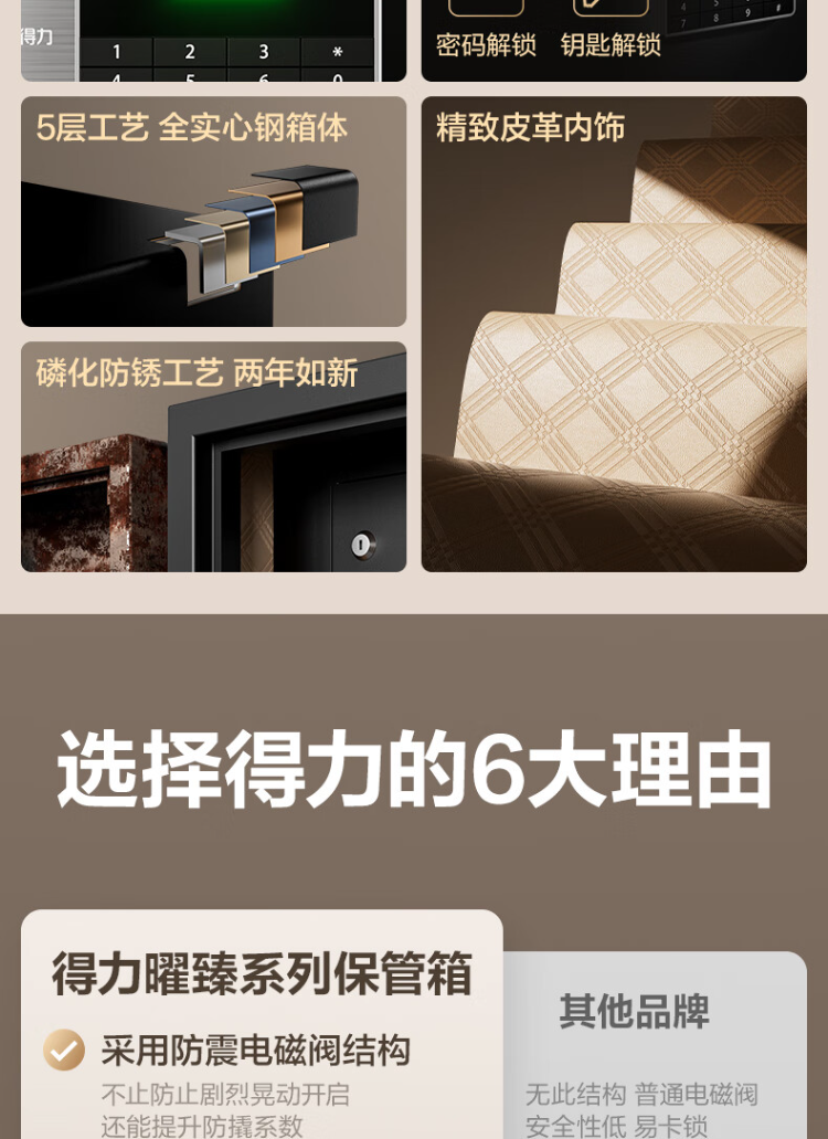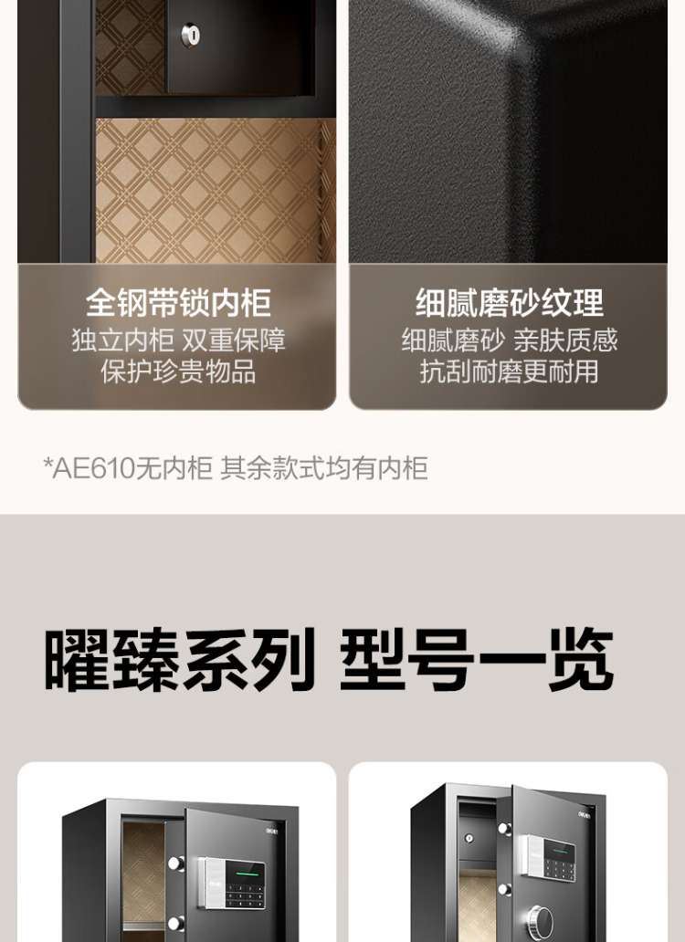 得力AE611保险柜办公财务专用小型保密箱全钢防盗入墙入柜床头保管柜曜臻高60cm