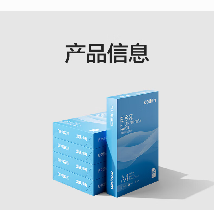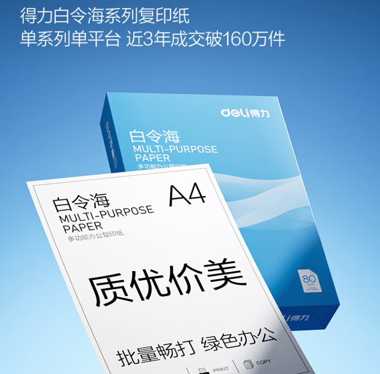 得力 7763白令海A4打印纸 80g500张*5包一箱 复印纸 整箱2500张