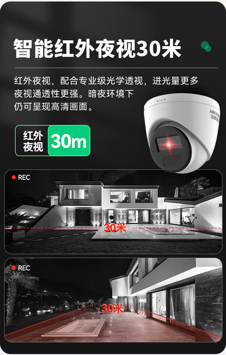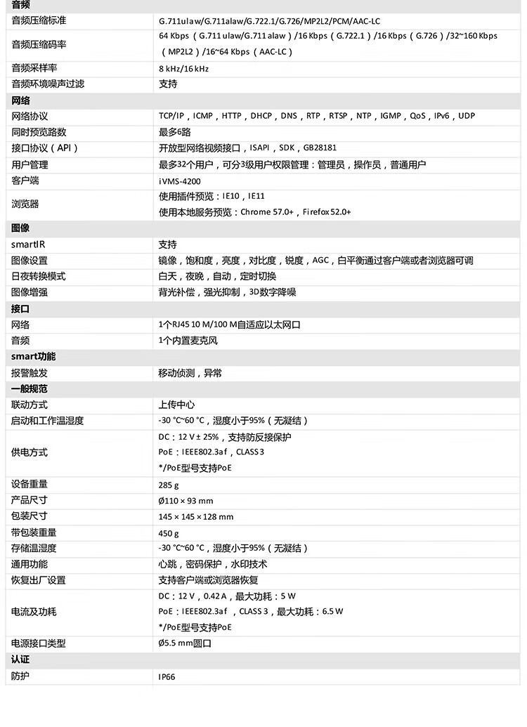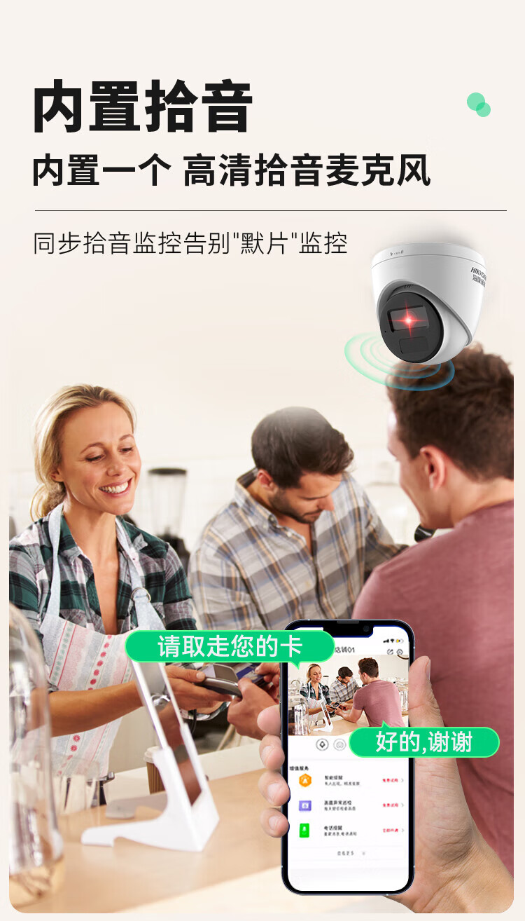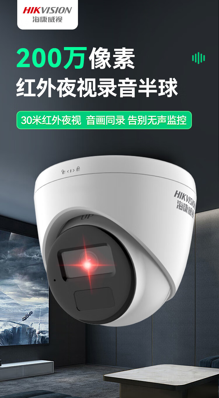 DS-IPC-T12HV3-iA 2.8MM监控摄像头200万室内外拾音红外夜视可录音半球