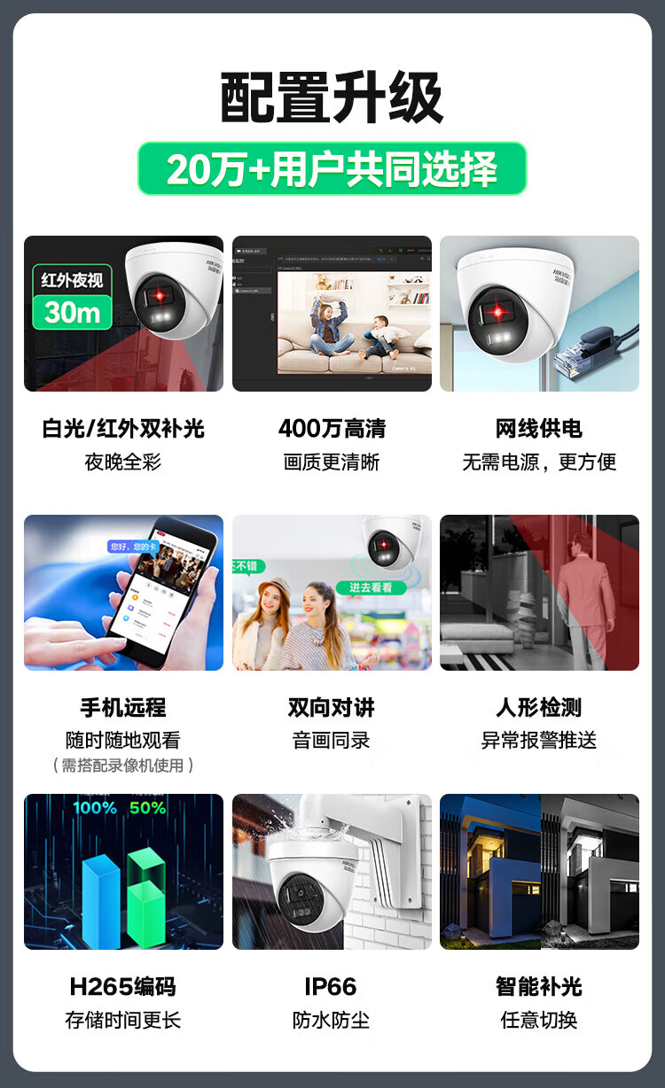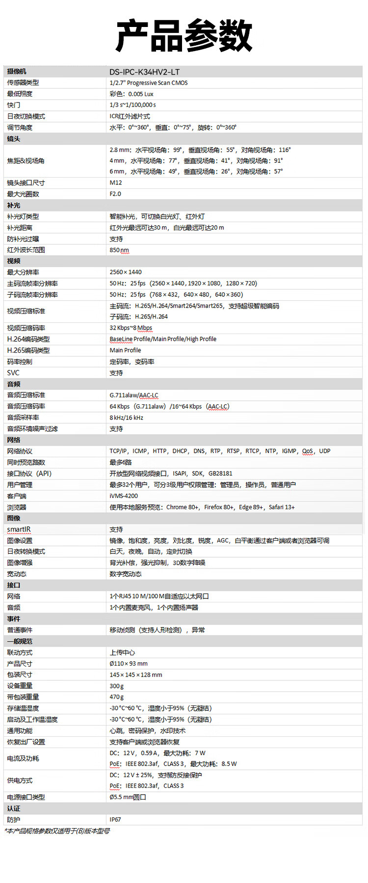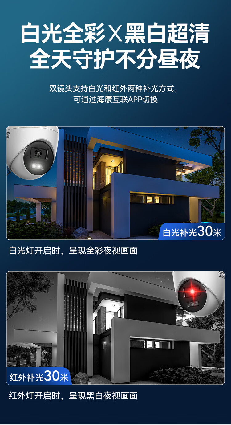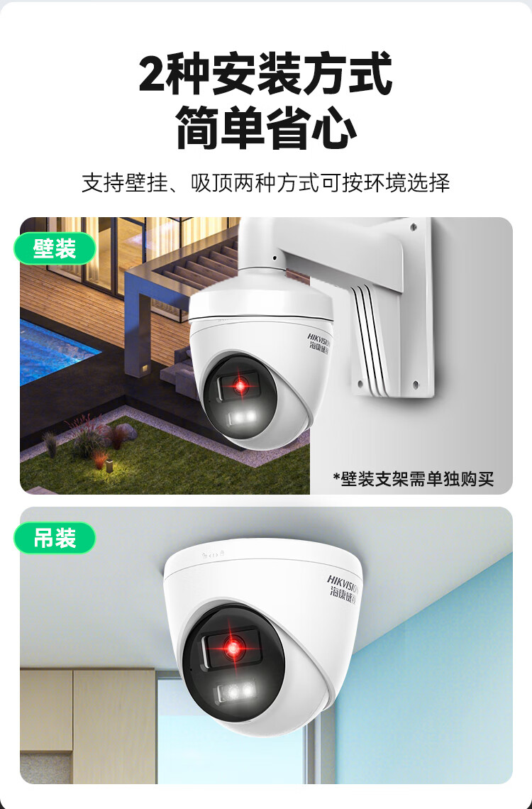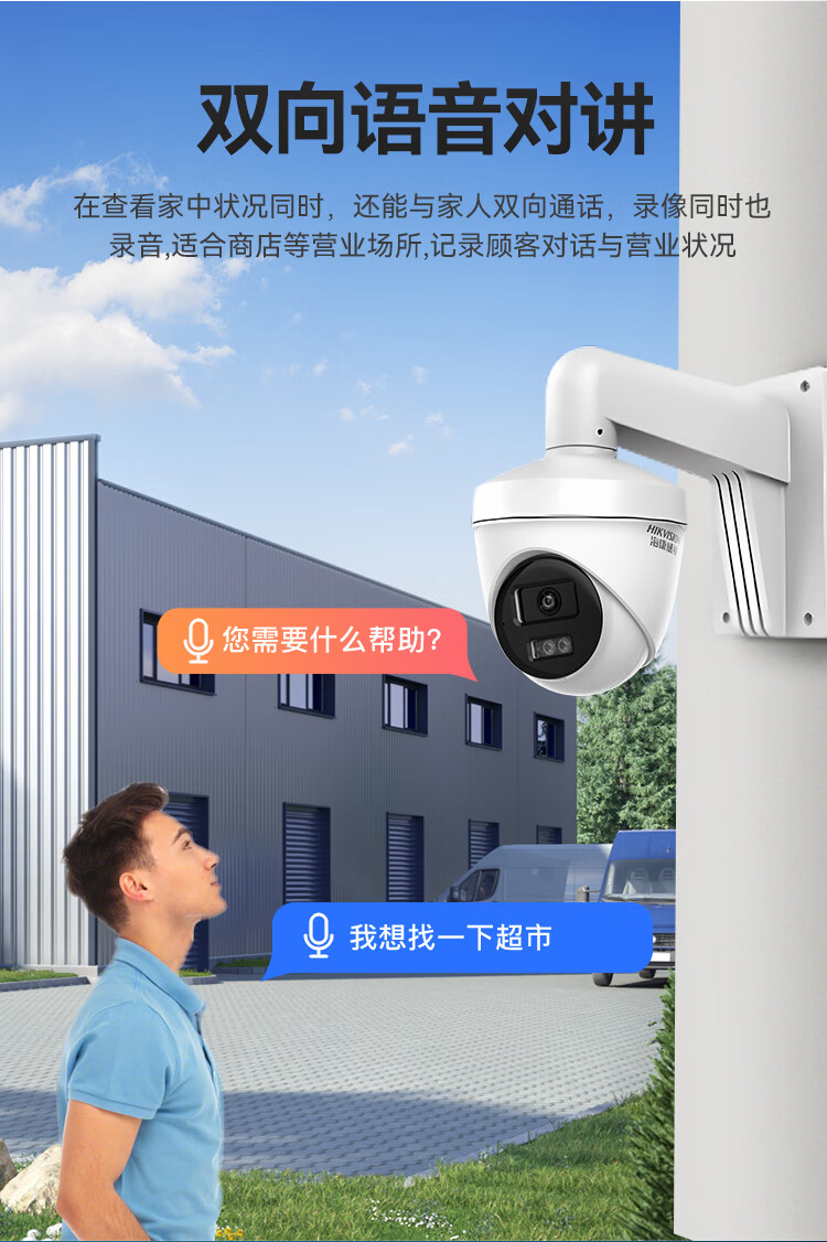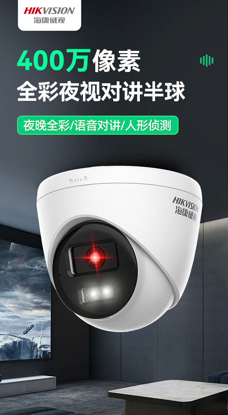海康威视DS-IPC-K34HV2-LT 2.8MM监控摄像头400万全彩夜视供电语音对讲