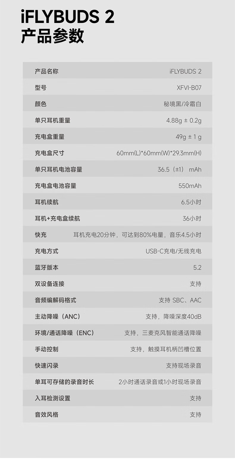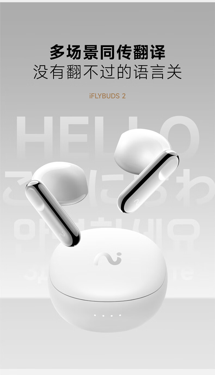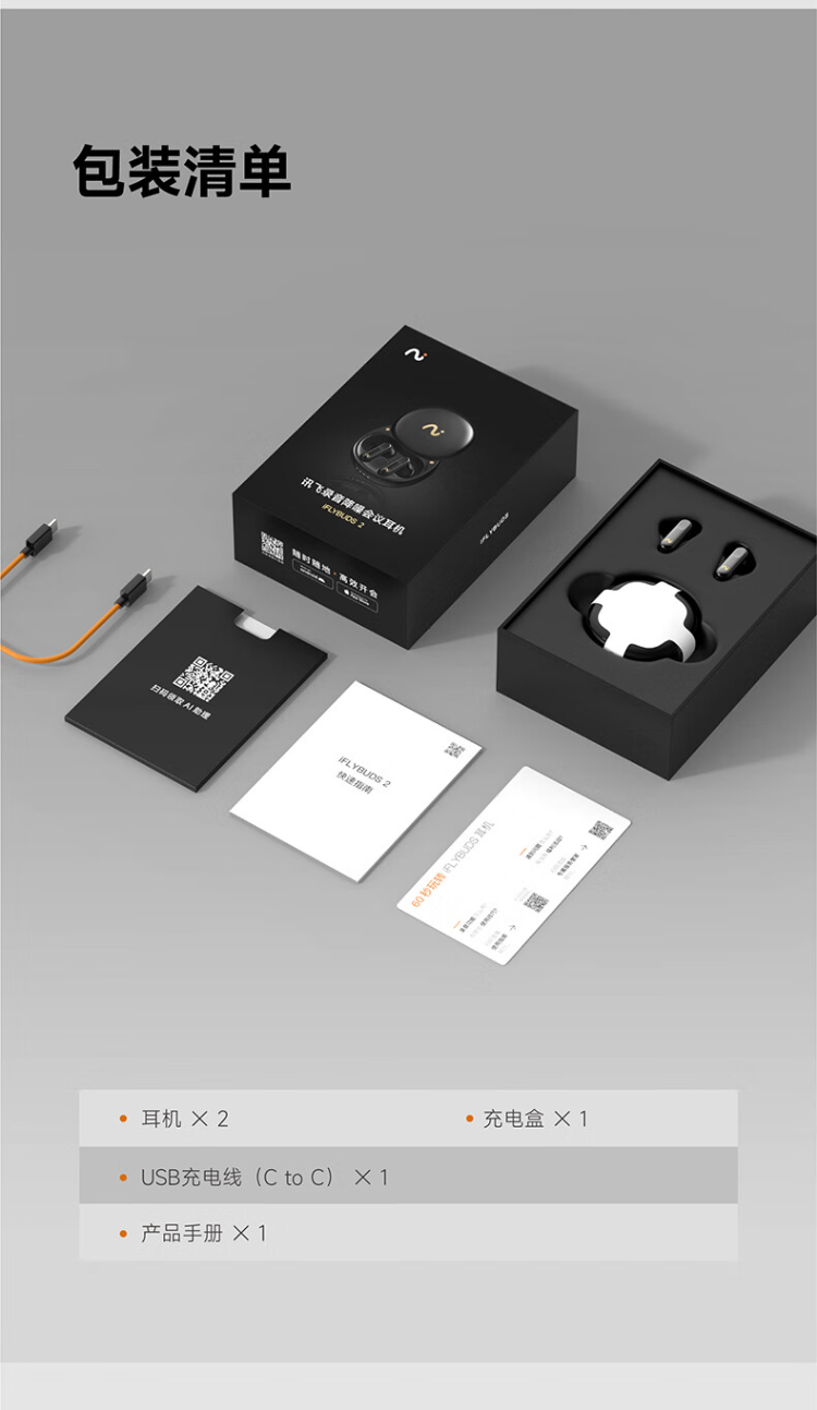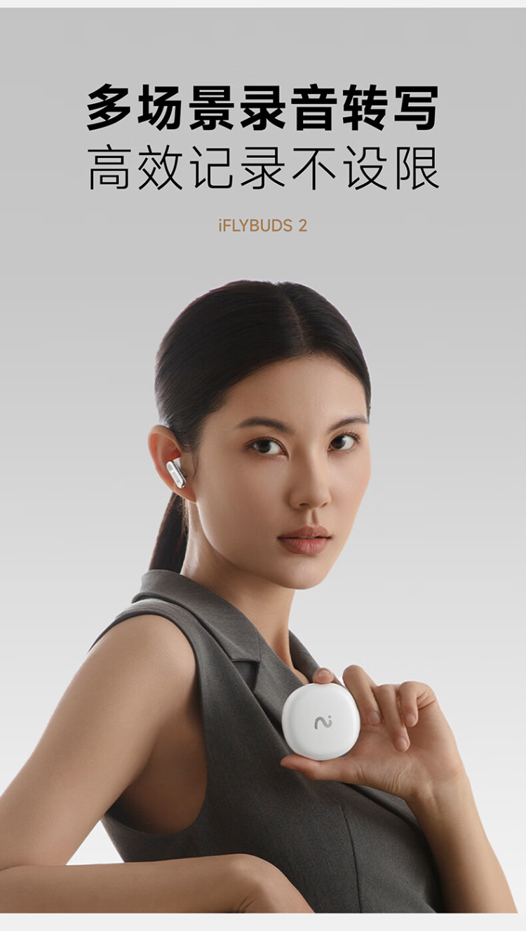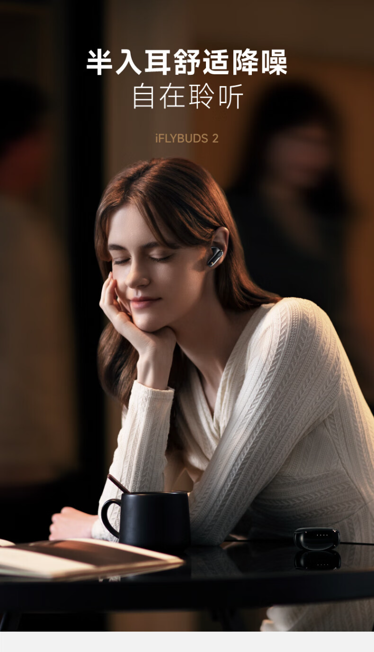 科大讯飞 录音降噪会议蓝牙耳机iFLYBUDS 2半入耳同传翻译【秘境黑】XFVI-B07