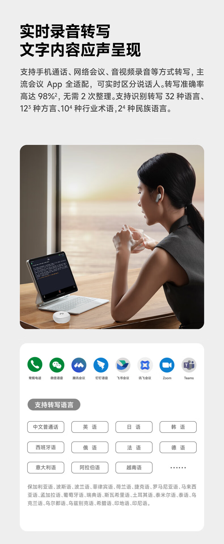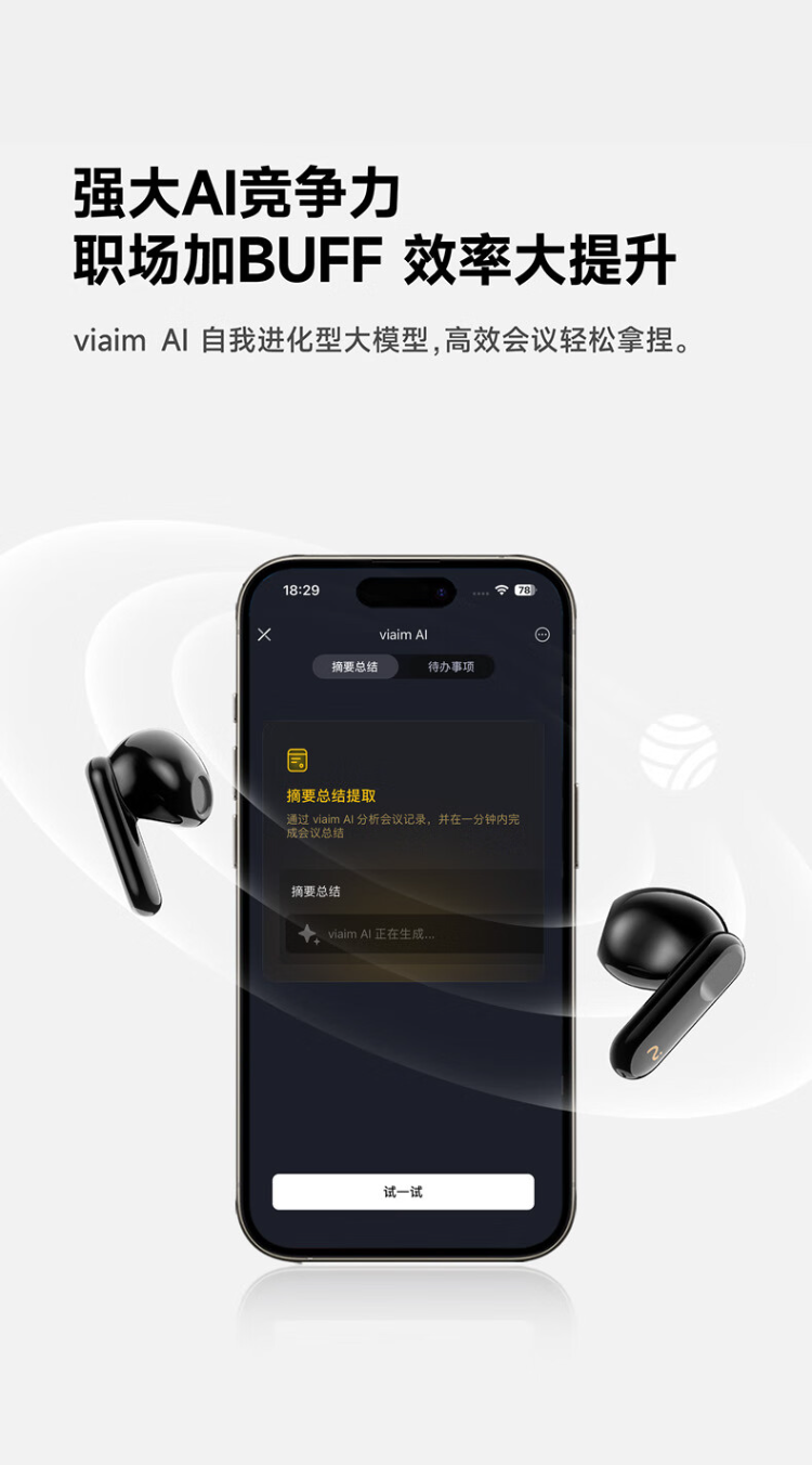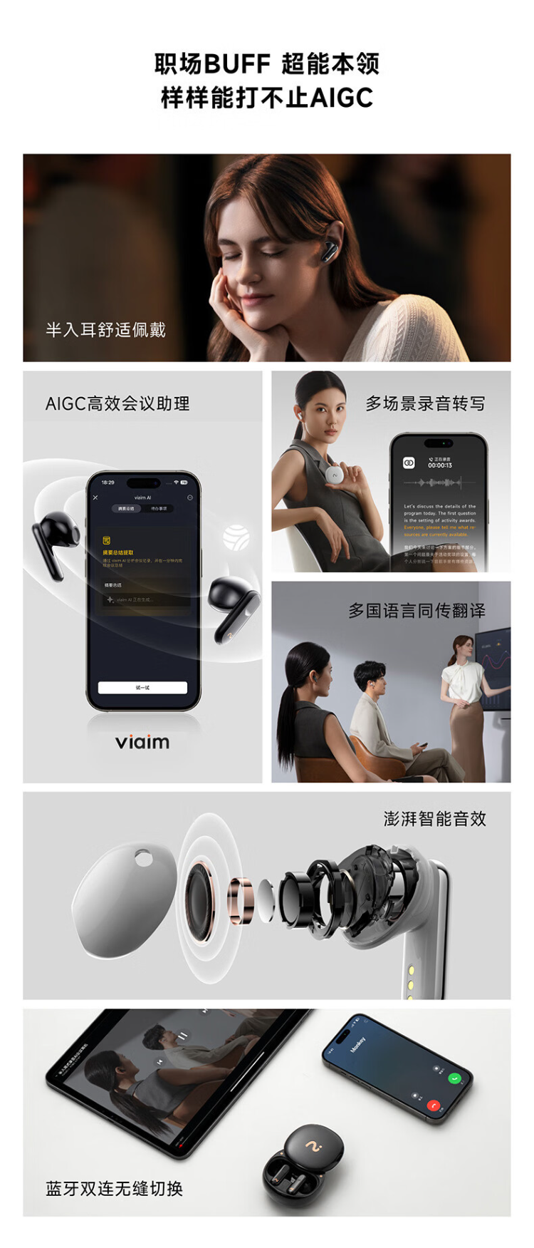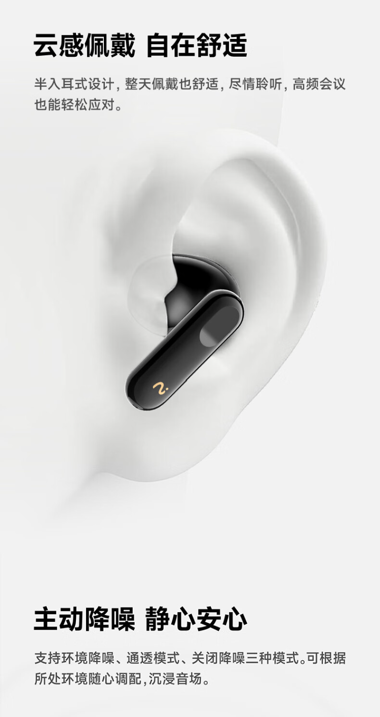科大讯飞 录音降噪会议蓝牙耳机iFLYBUDS 2半入耳同传翻译【秘境黑】XFVI-B07
