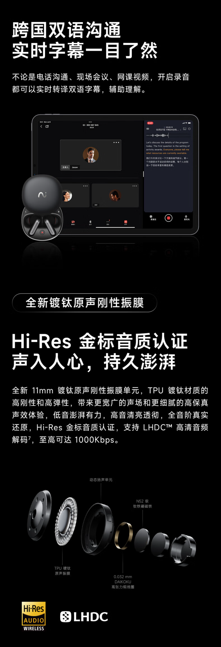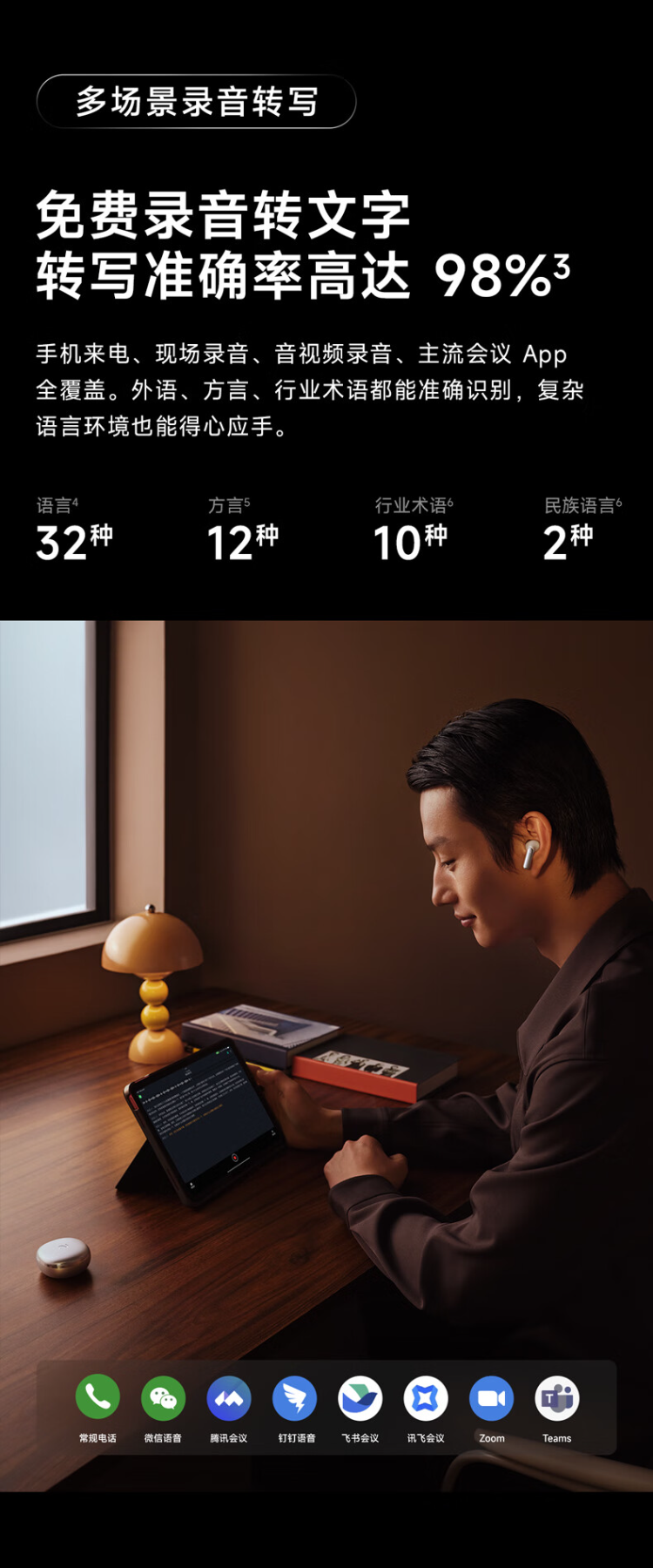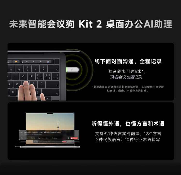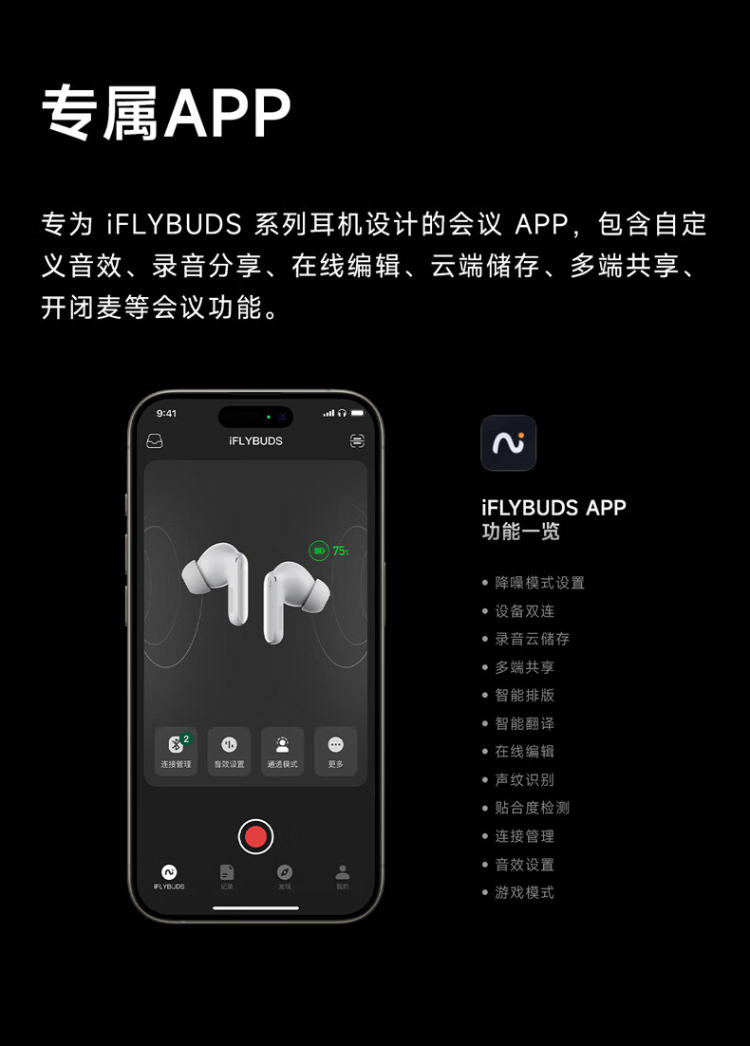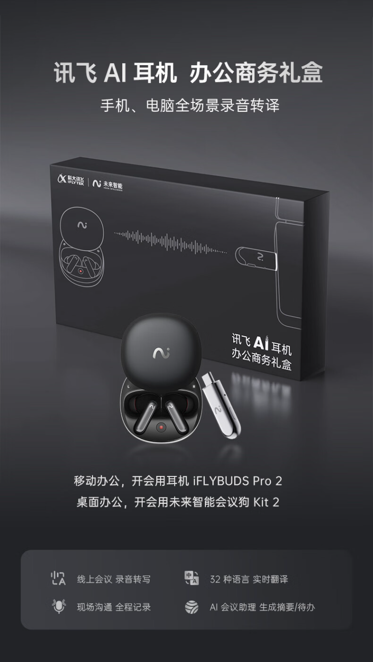科大讯飞录音降噪会议蓝牙耳机Pro2夜影黑+会议狗KIT2【商务礼盒】XFVI-A08