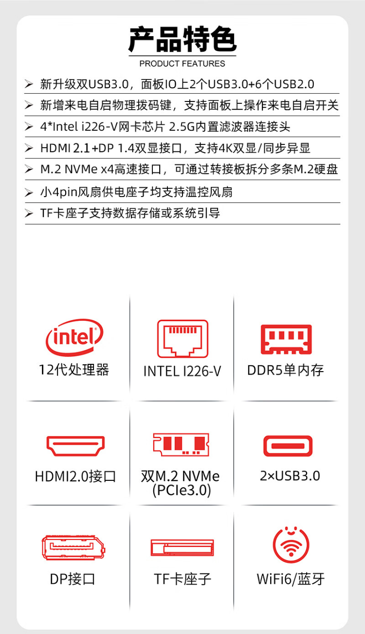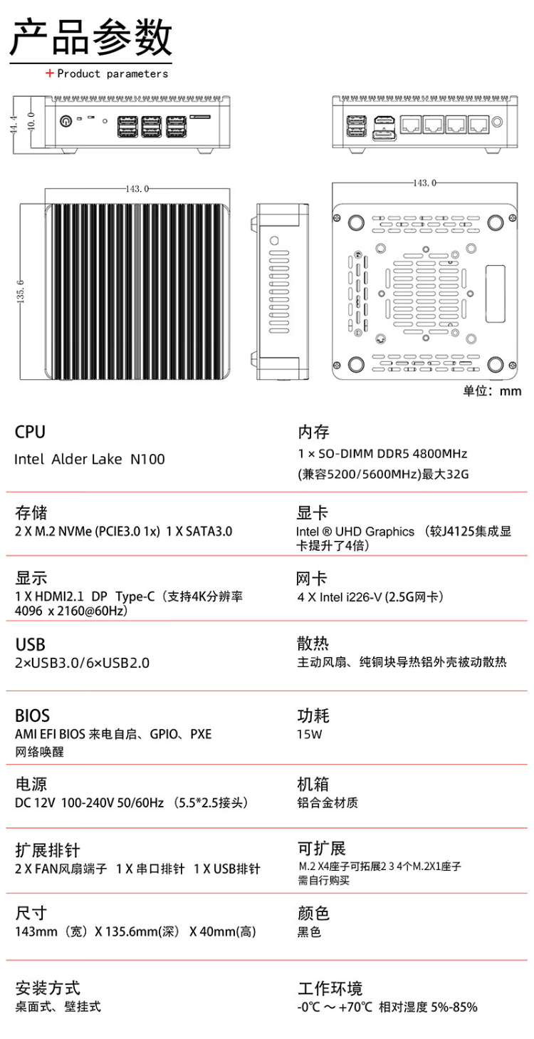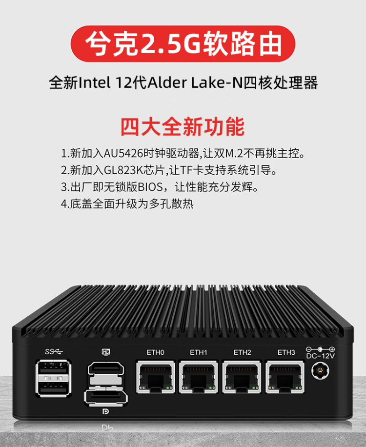 兮克 SKR-N1004软路由4个2.5G网口16G内存128G固态Intel N100