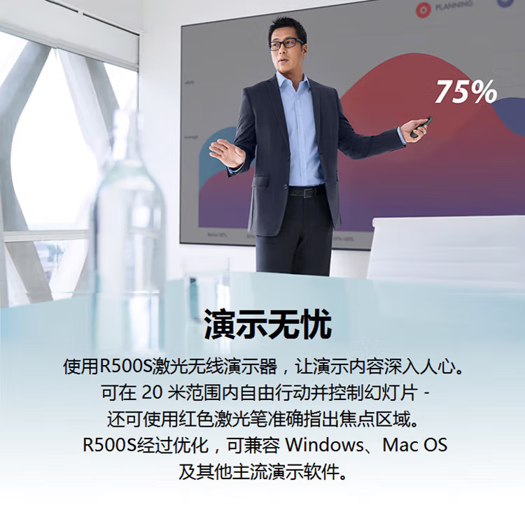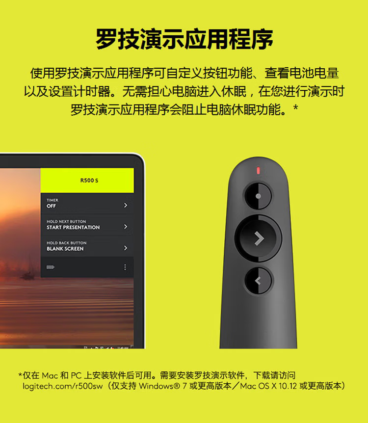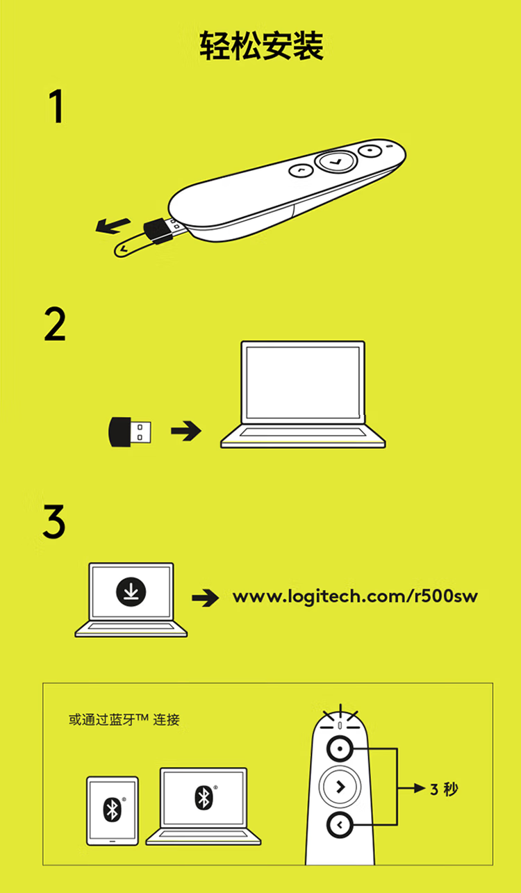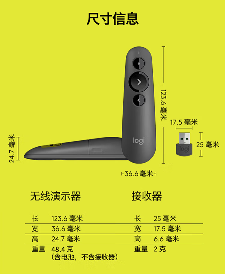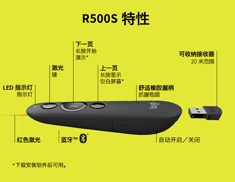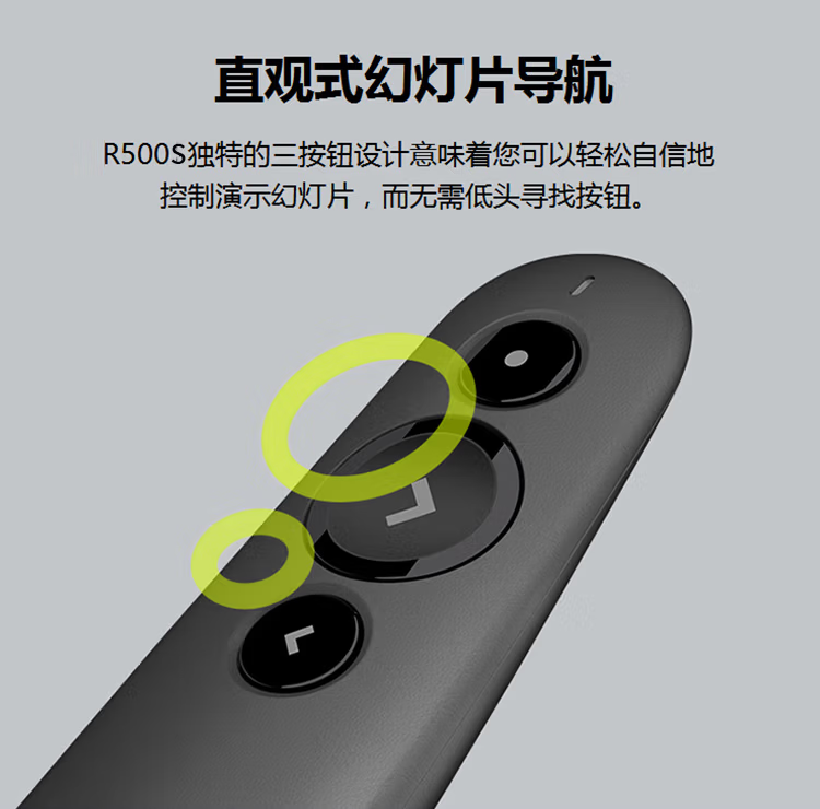 罗技(Logitech)R500升级款R500S 无线演示器 激光笔 ppt翻页笔 黑色