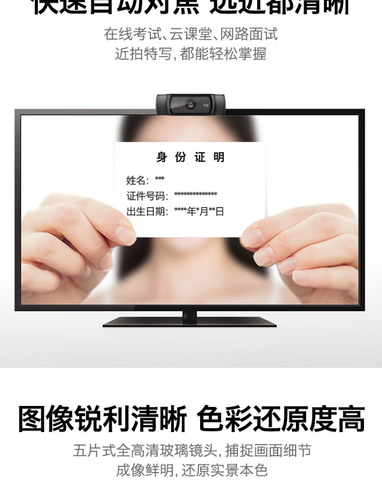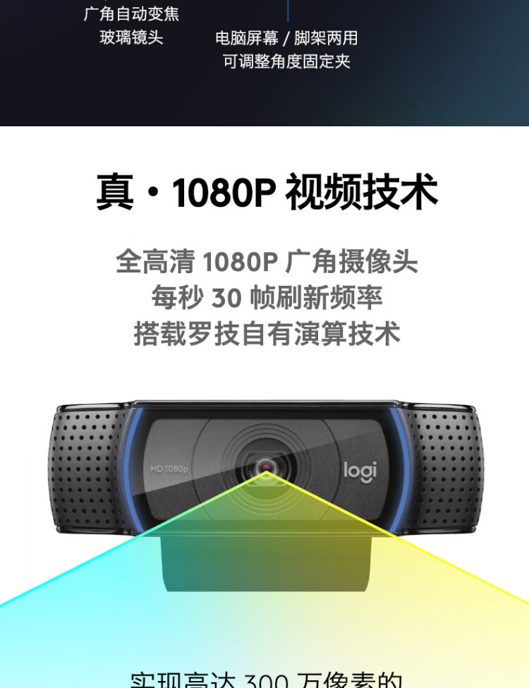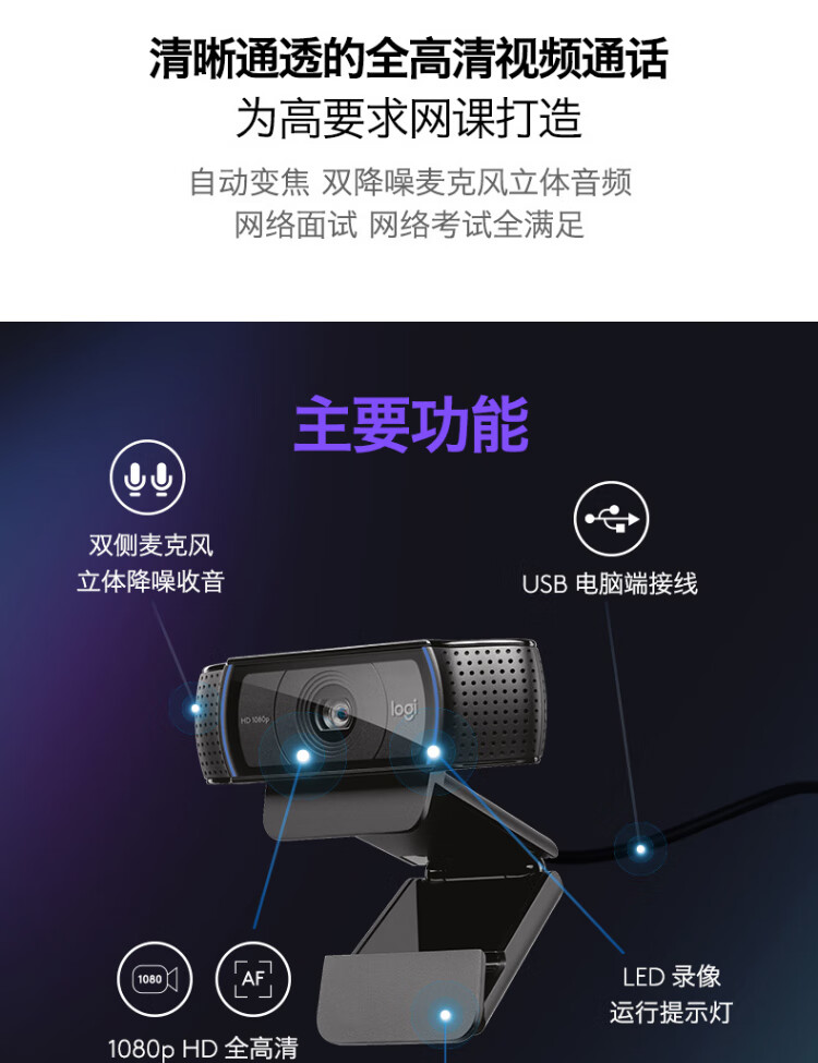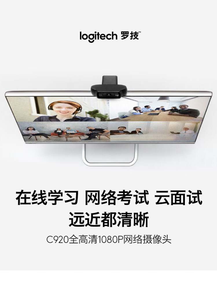罗技 C920 PRO 高清网络摄像头 视频通话 会议网课 电脑笔记本家用摄像头