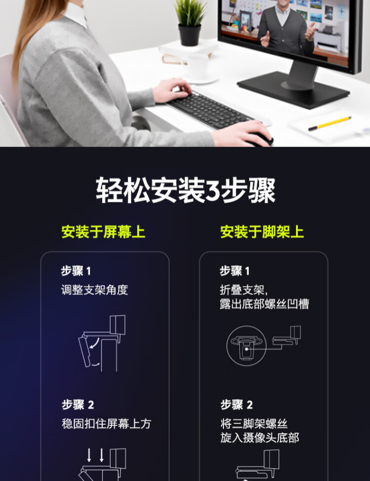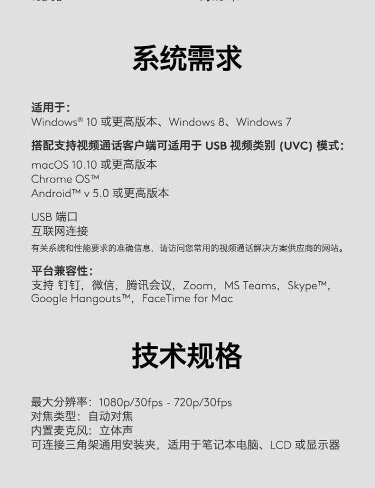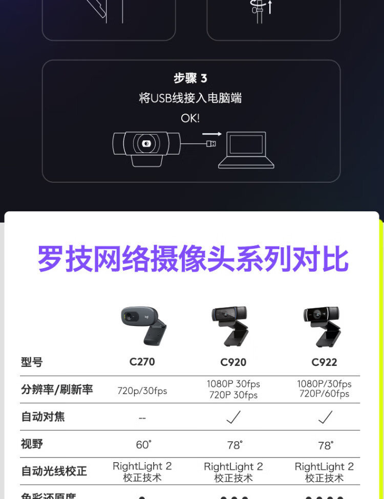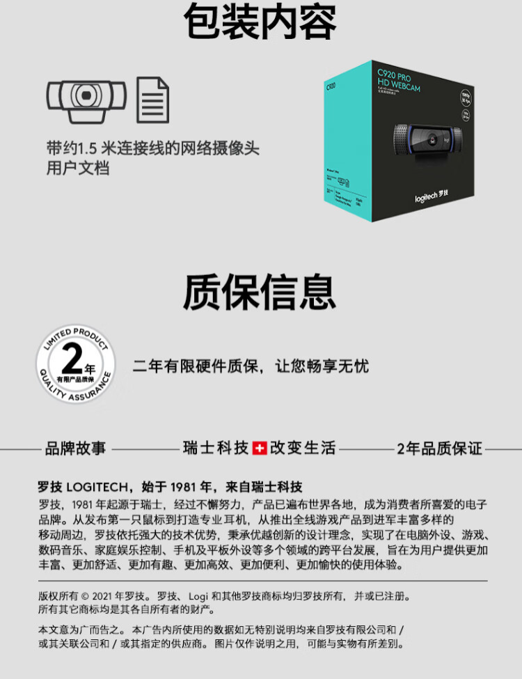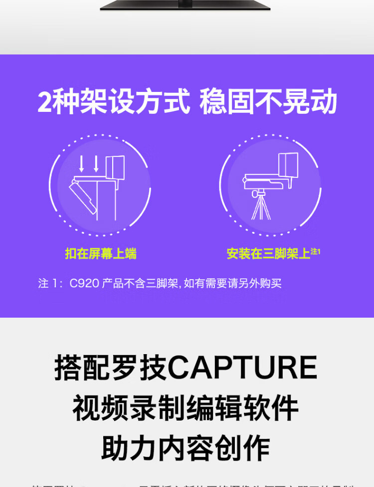 罗技 C920 PRO 高清网络摄像头 视频通话 会议网课 电脑笔记本家用摄像头