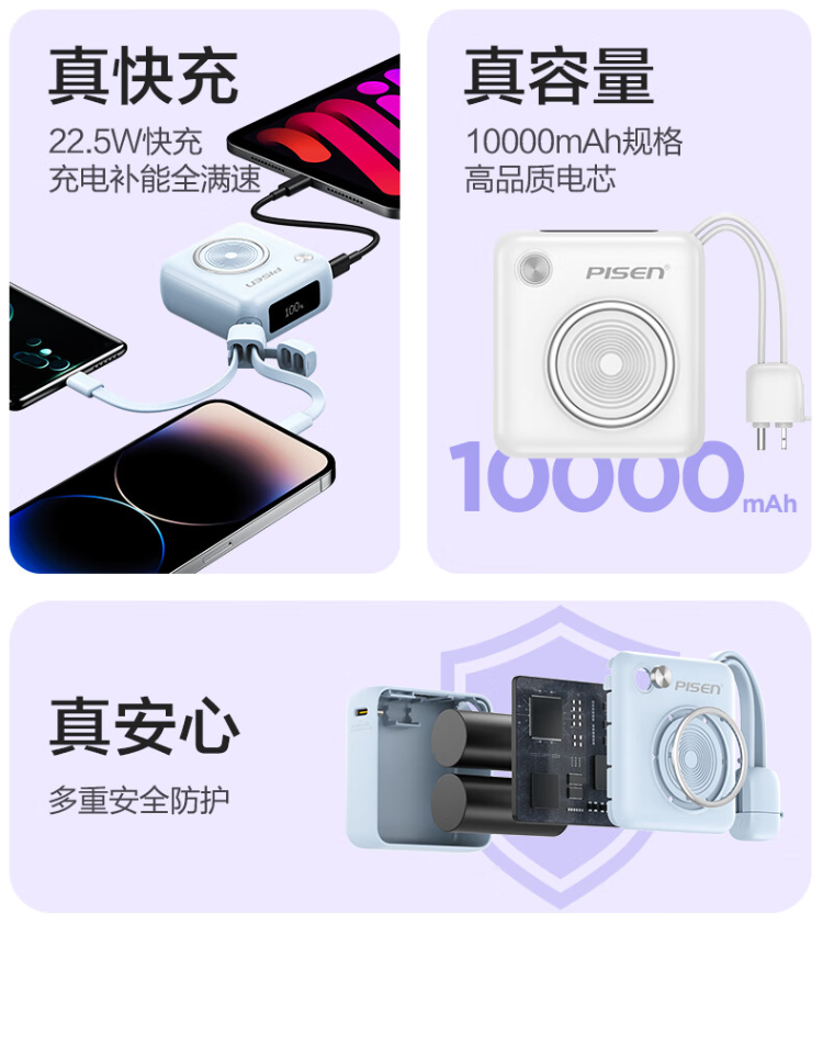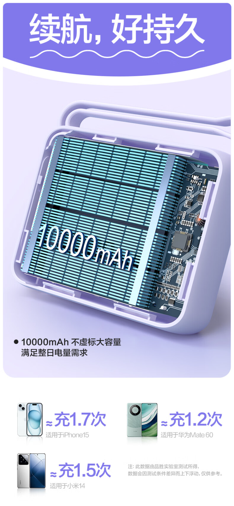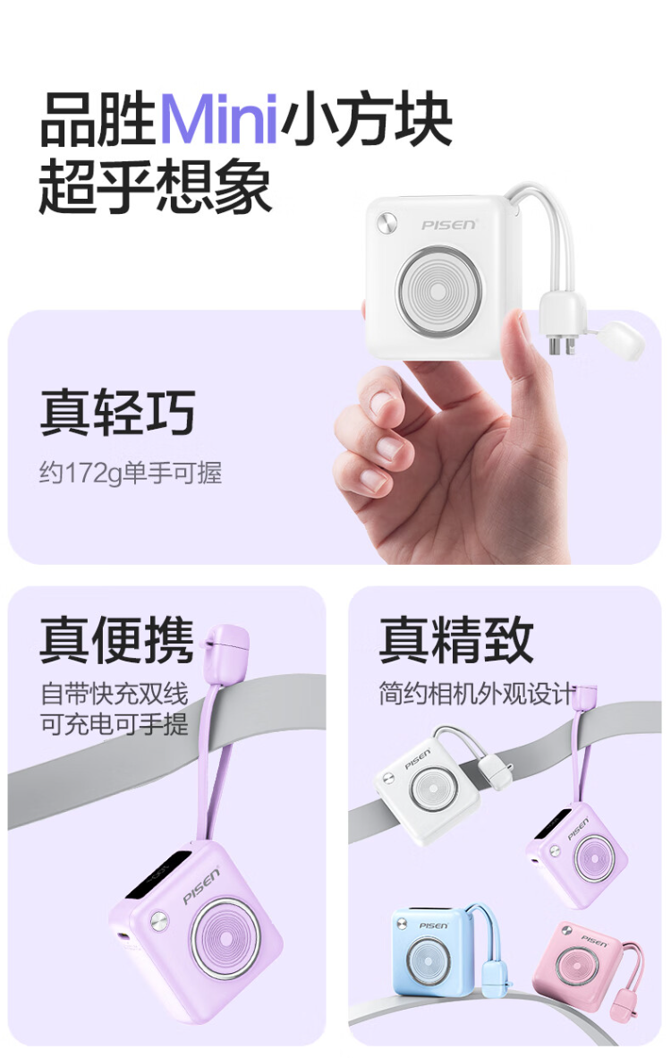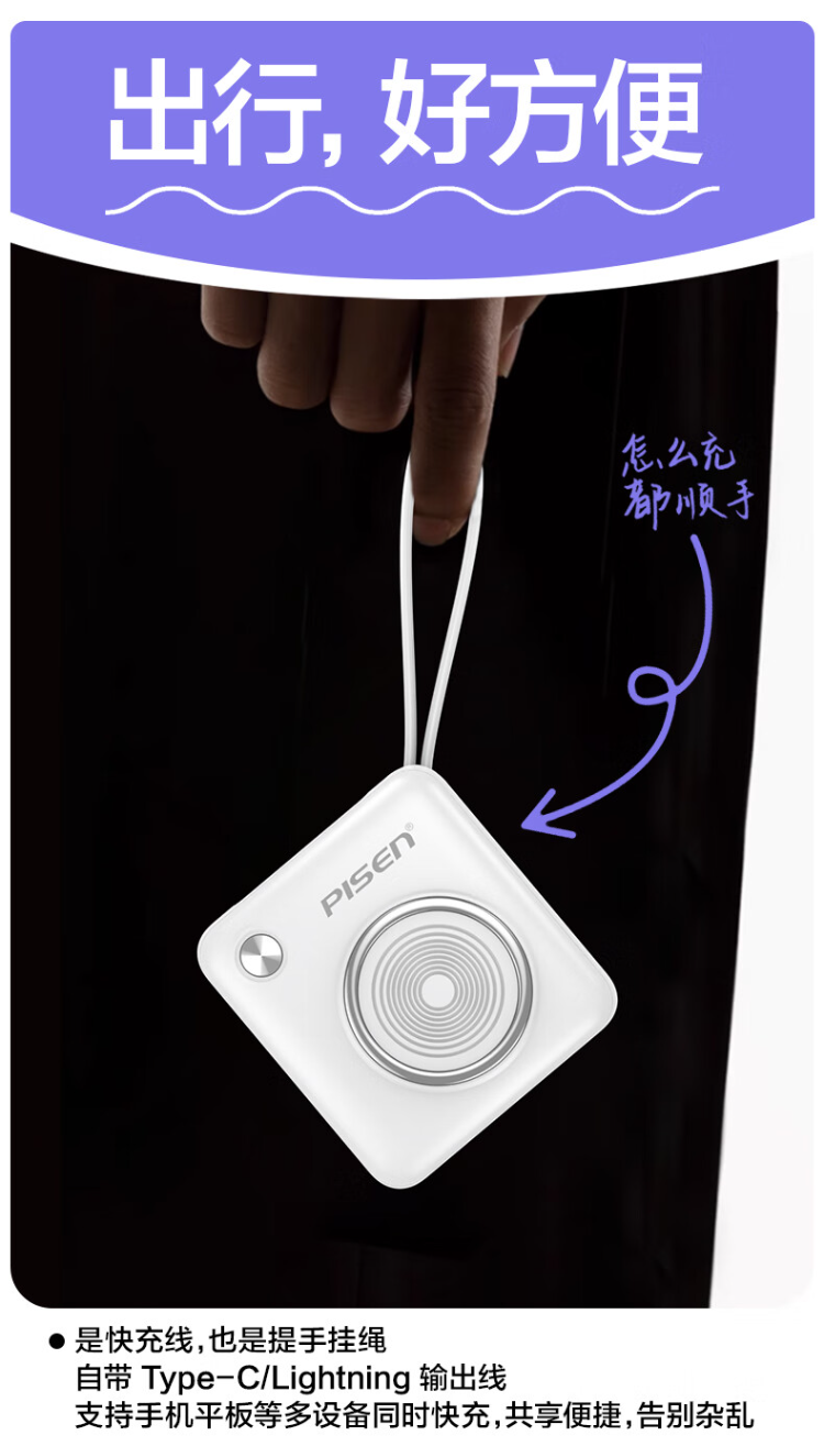 TP-D105白 品胜充电宝22.5W快充迷你自带双线10000毫安大容量可上飞机移动电源