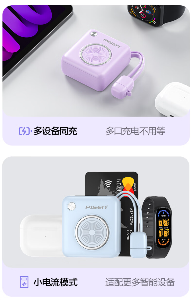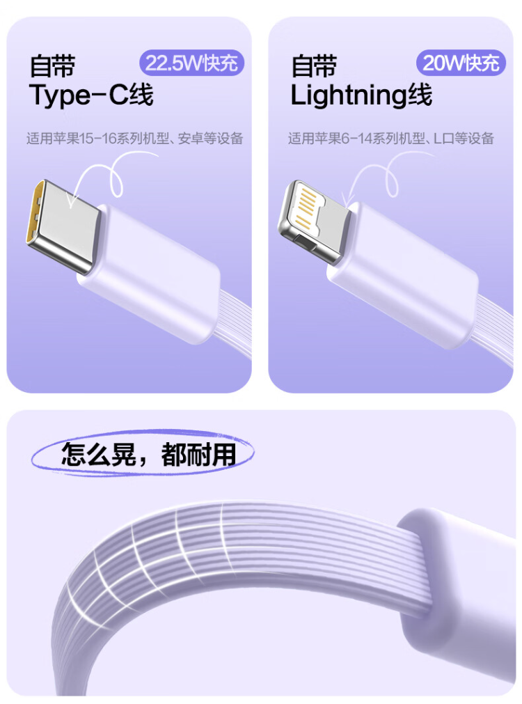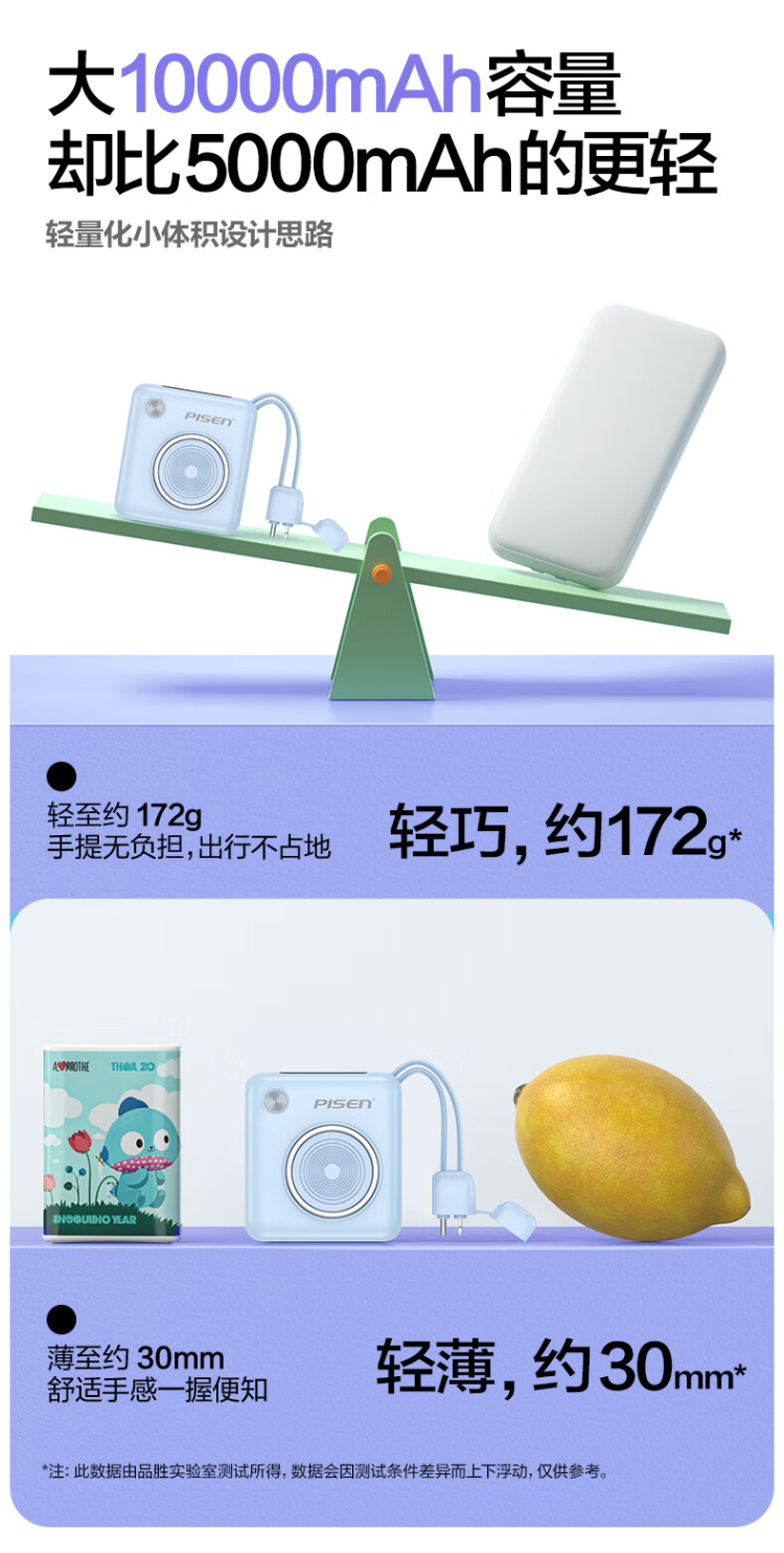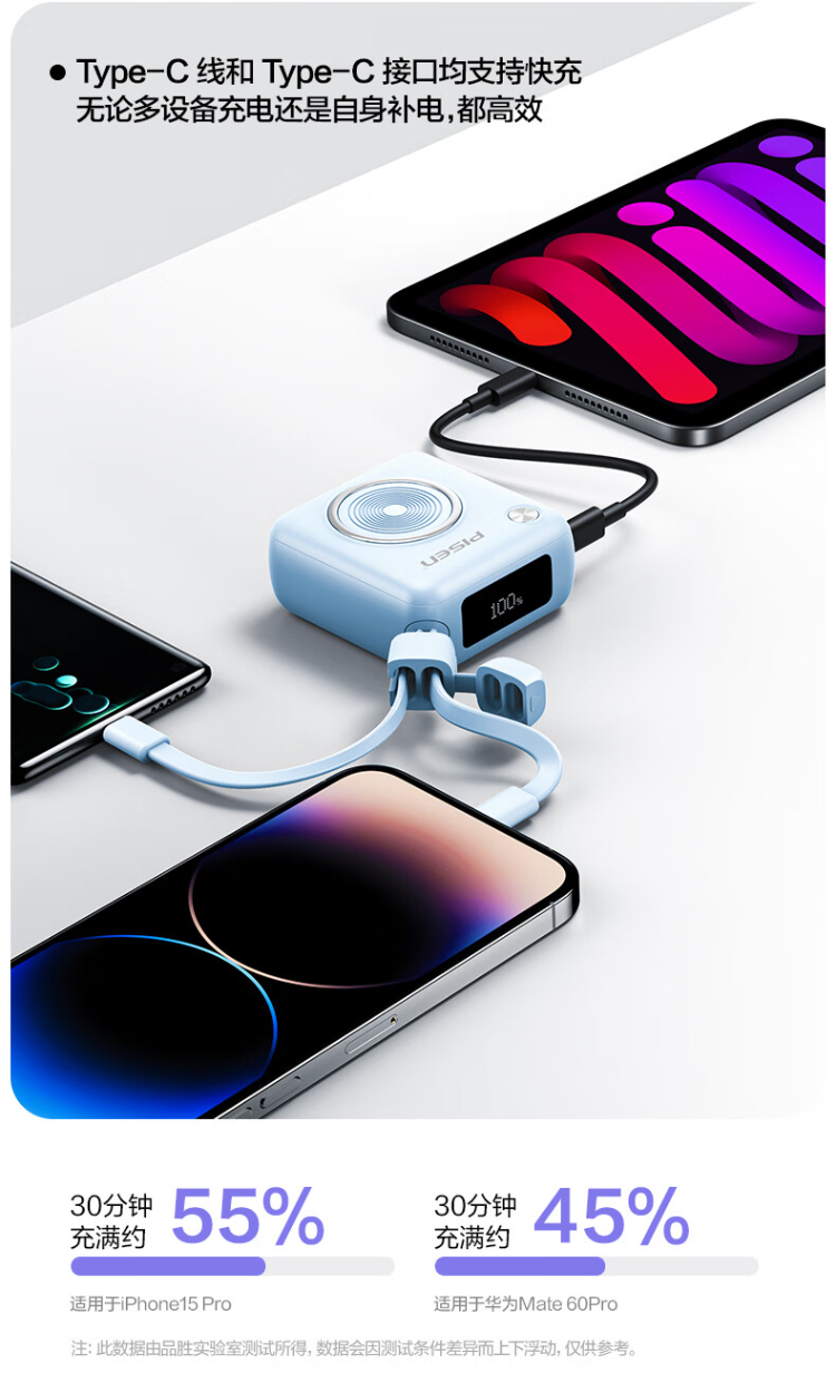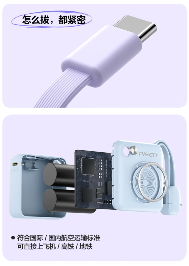 TP-D105白 品胜充电宝22.5W快充迷你自带双线10000毫安大容量可上飞机移动电源