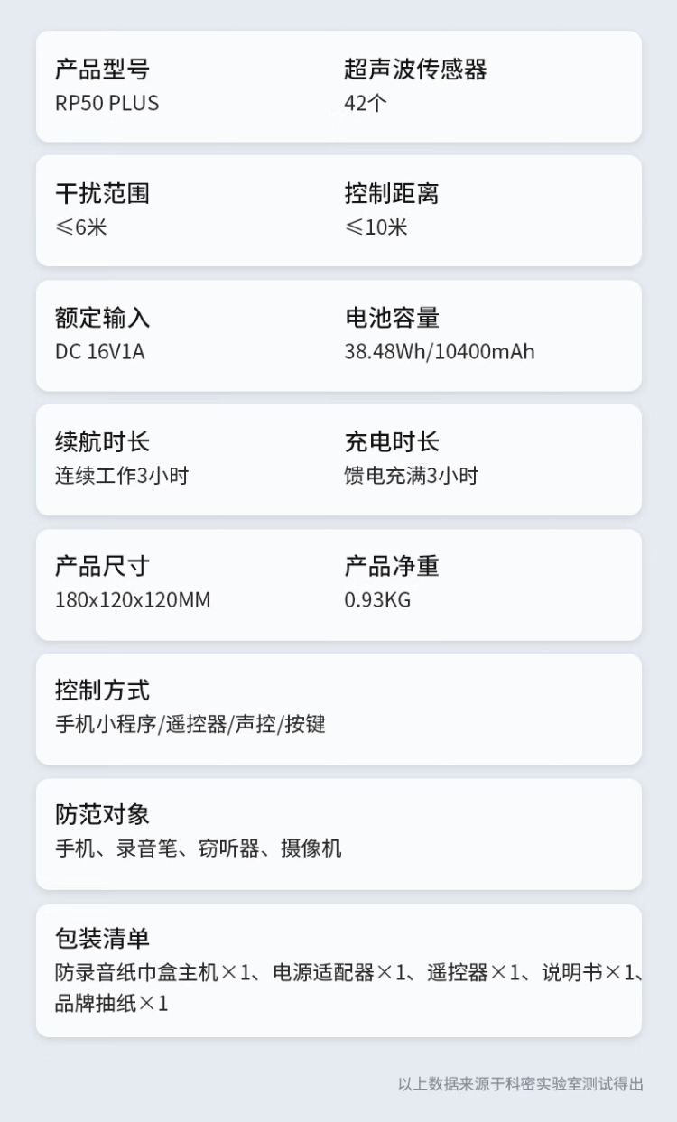 科密防录音干扰器手机防监屏蔽仪保护神器四面360度42孔手机遥控板|RP50 PLUS