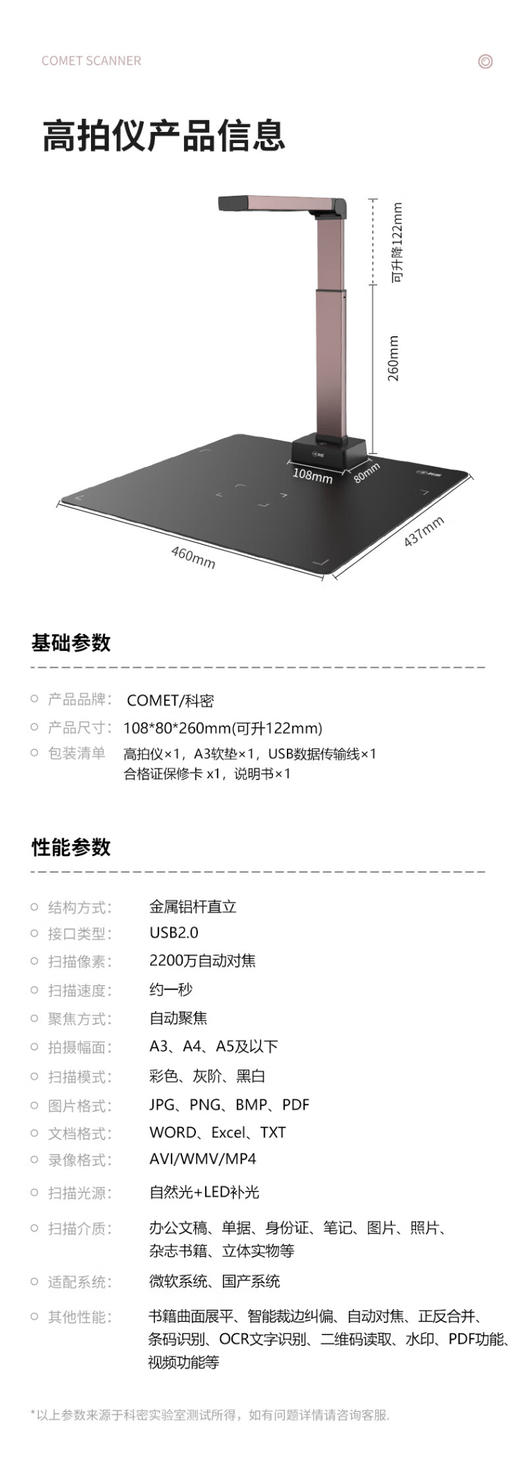 科密A5320 高拍仪 2200万高清像素 可在线升级A3A4扫描仪 文件PDF合成