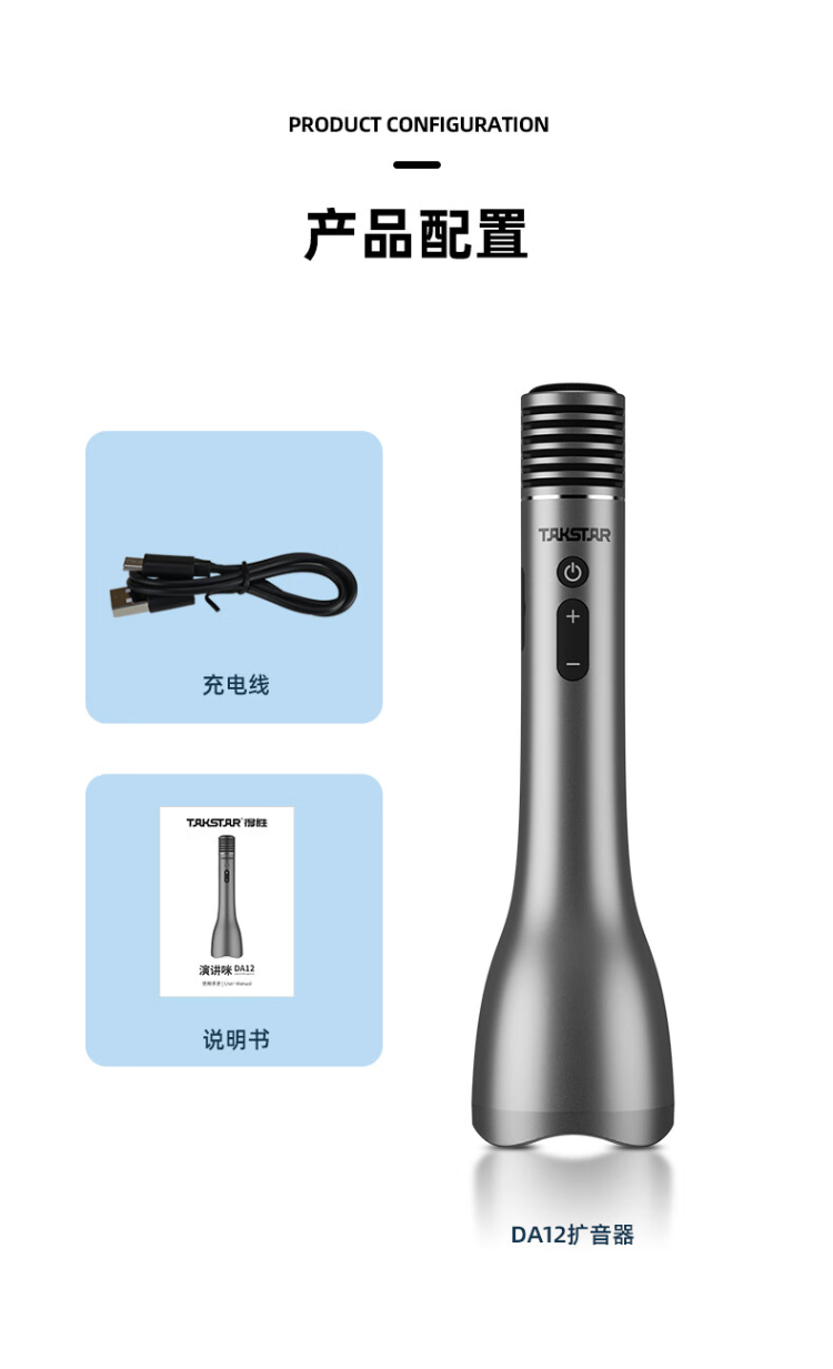 得胜 DA12 k歌麦克风音响一体手持麦克风无线小蜜蜂扩音器教学专用导游教师演讲咪 银色
