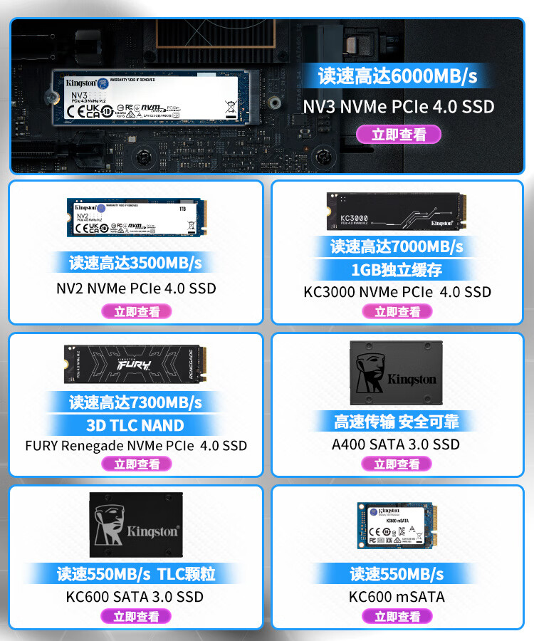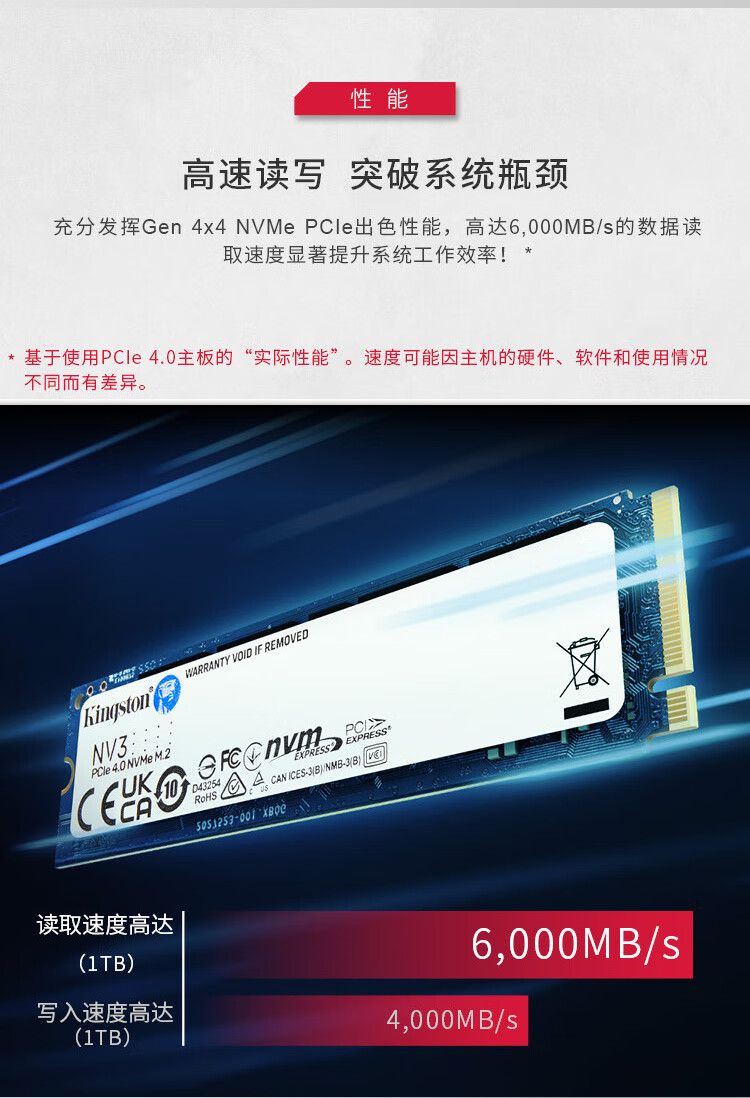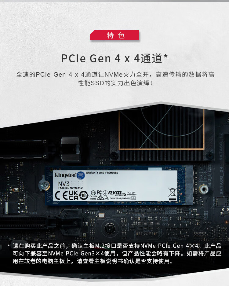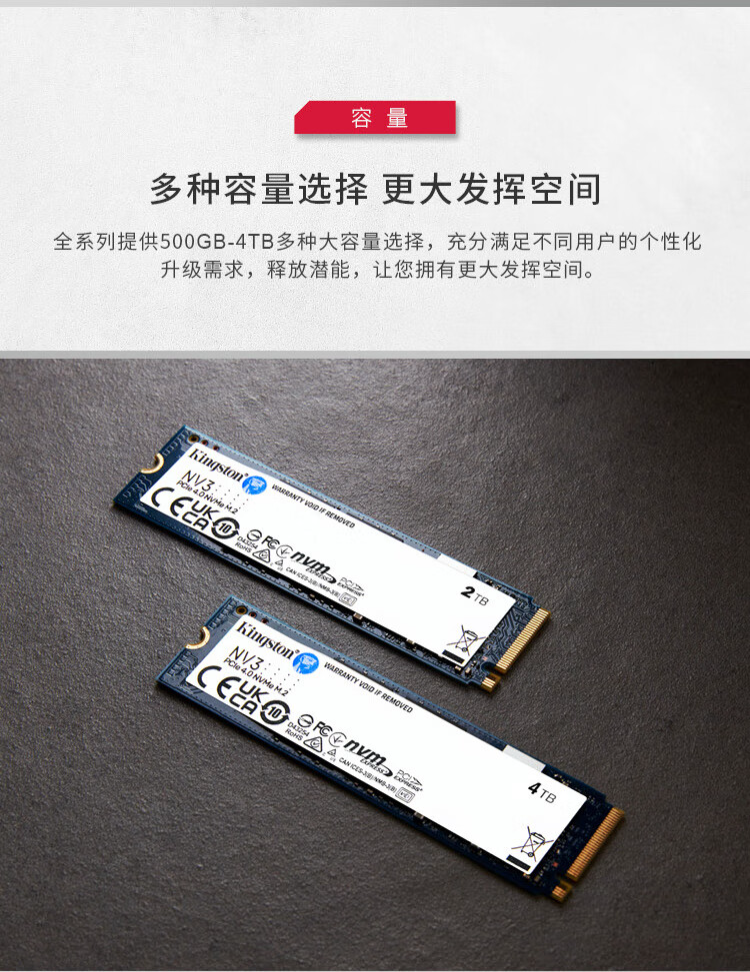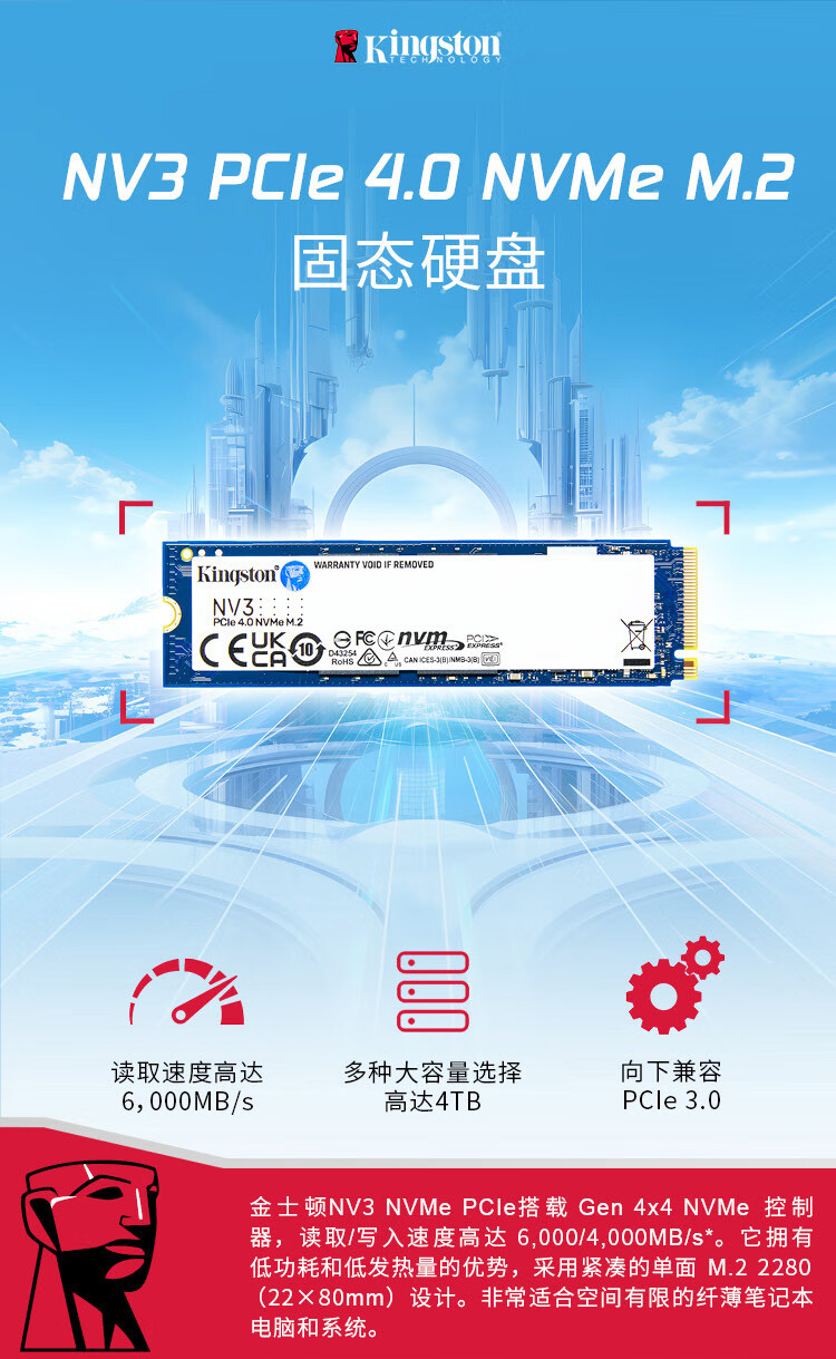 金士顿(Kingston)NV3全能PCle 4.0 500GB SSD固态硬盘NV3系列