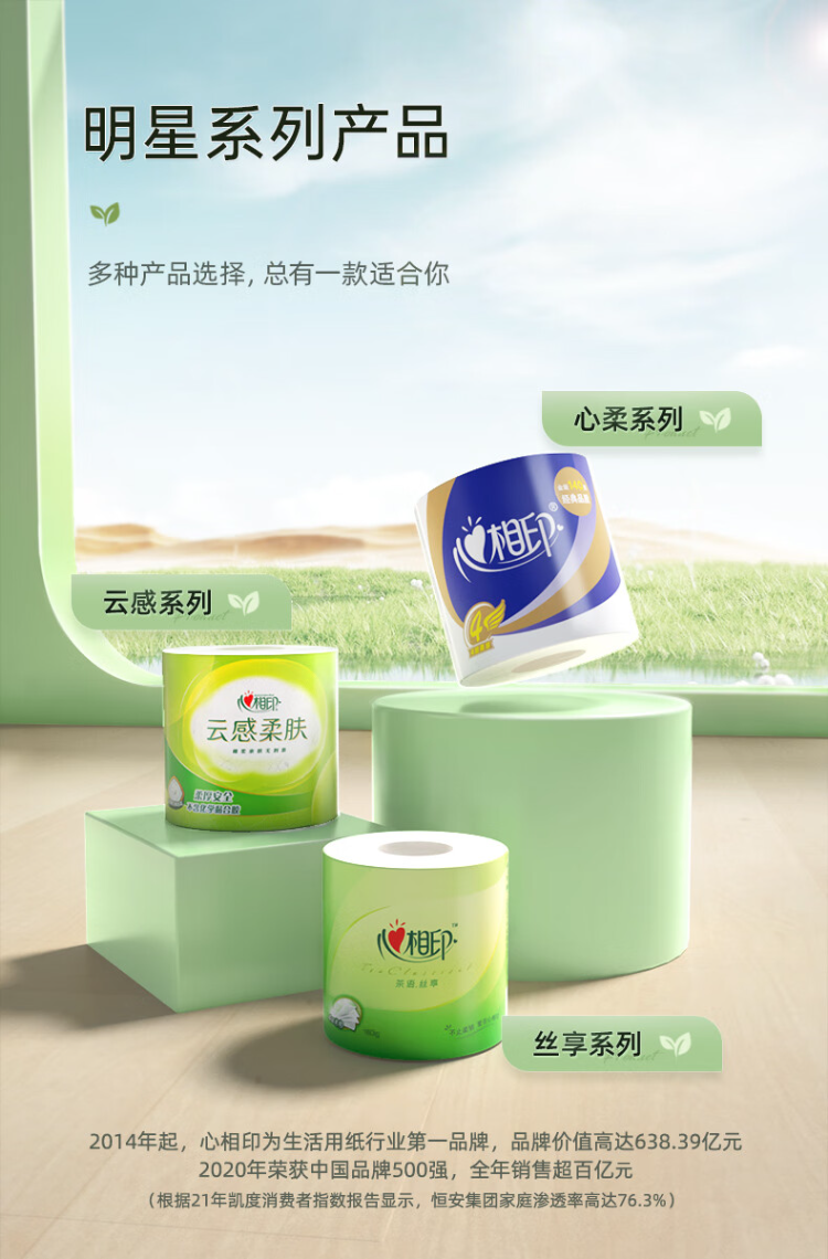 心相印无芯卷纸【肖战同款】丝享4层700克 10卷 卫生纸