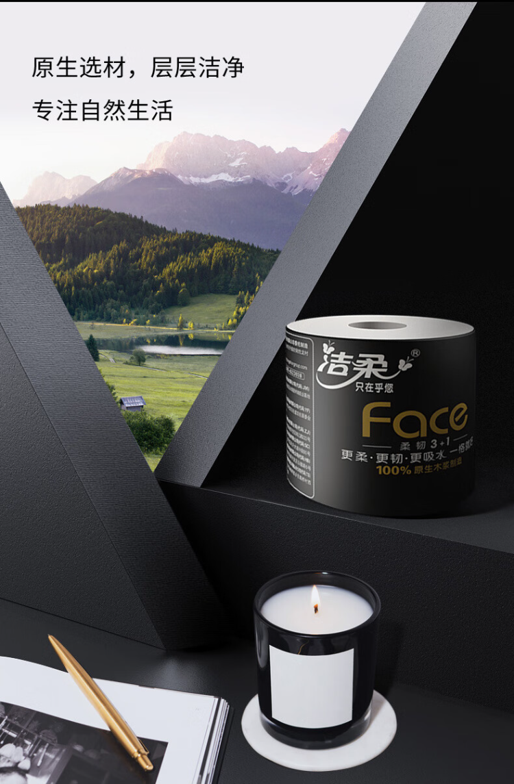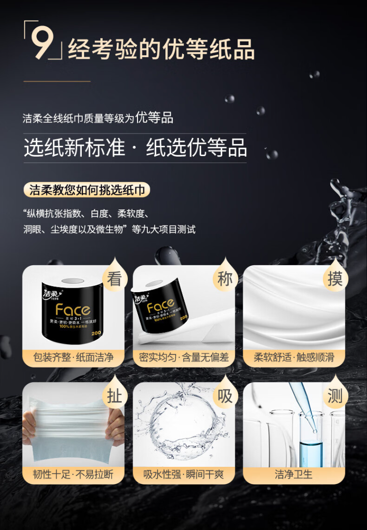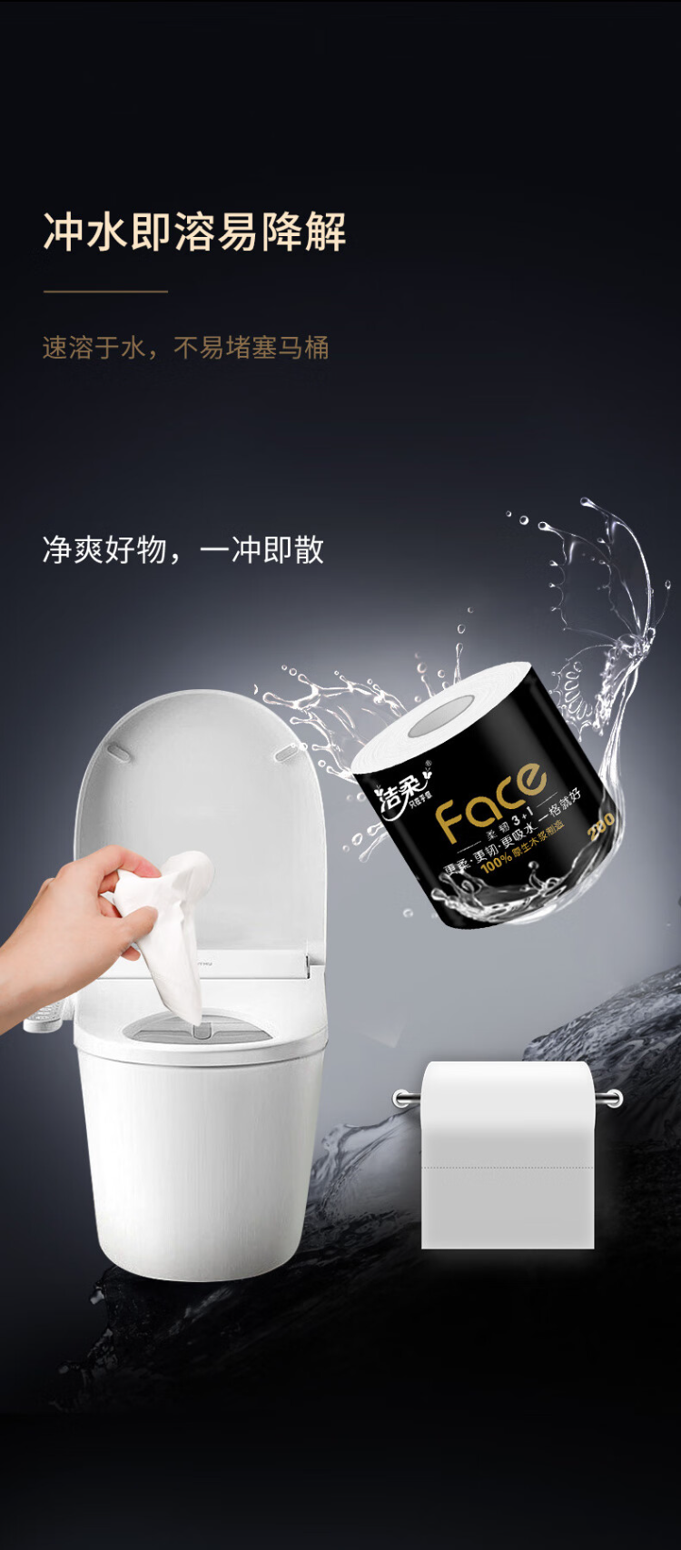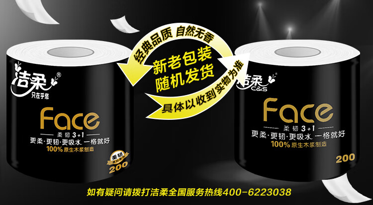 洁柔 JJ173-02 有芯卷纸 黑Face加厚4层200克*27卷 卫生纸整箱