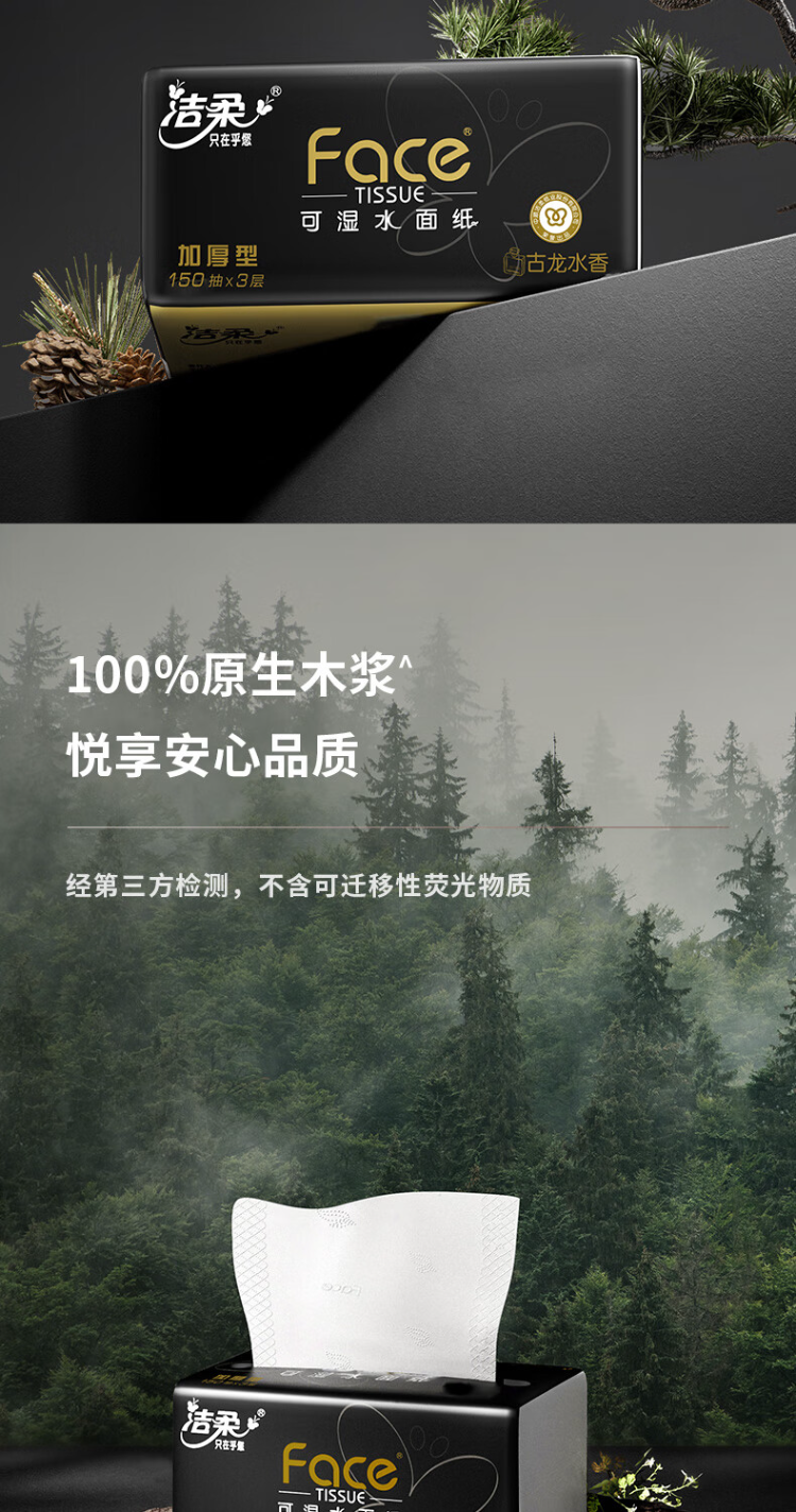 洁柔 BR060-01 抽纸 黑Face可湿水3层150抽*3包
