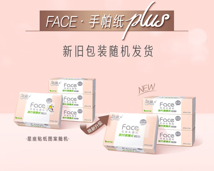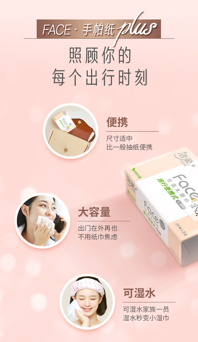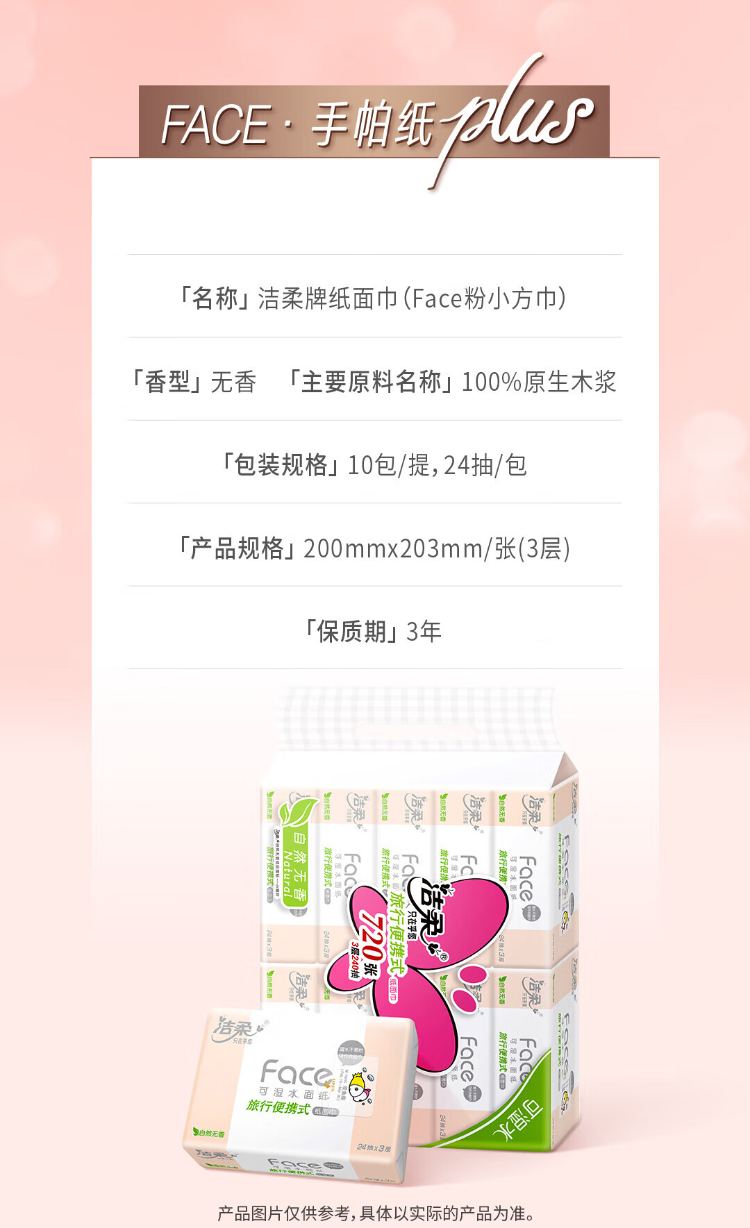 洁柔PL201-10抽纸 粉Face3层24抽*10包 小方巾面巾纸