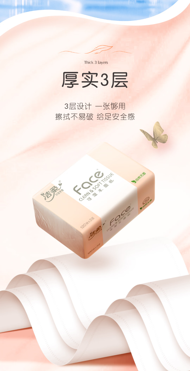 亲肤柔软 原生木浆面巾纸