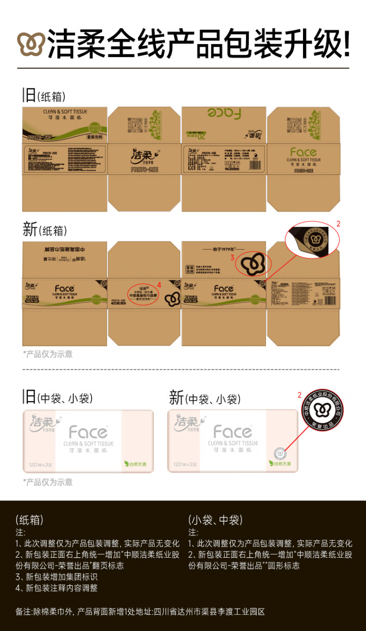 洁柔PR078-24E抽纸 粉Face柔韧3层120抽*24包 整箱