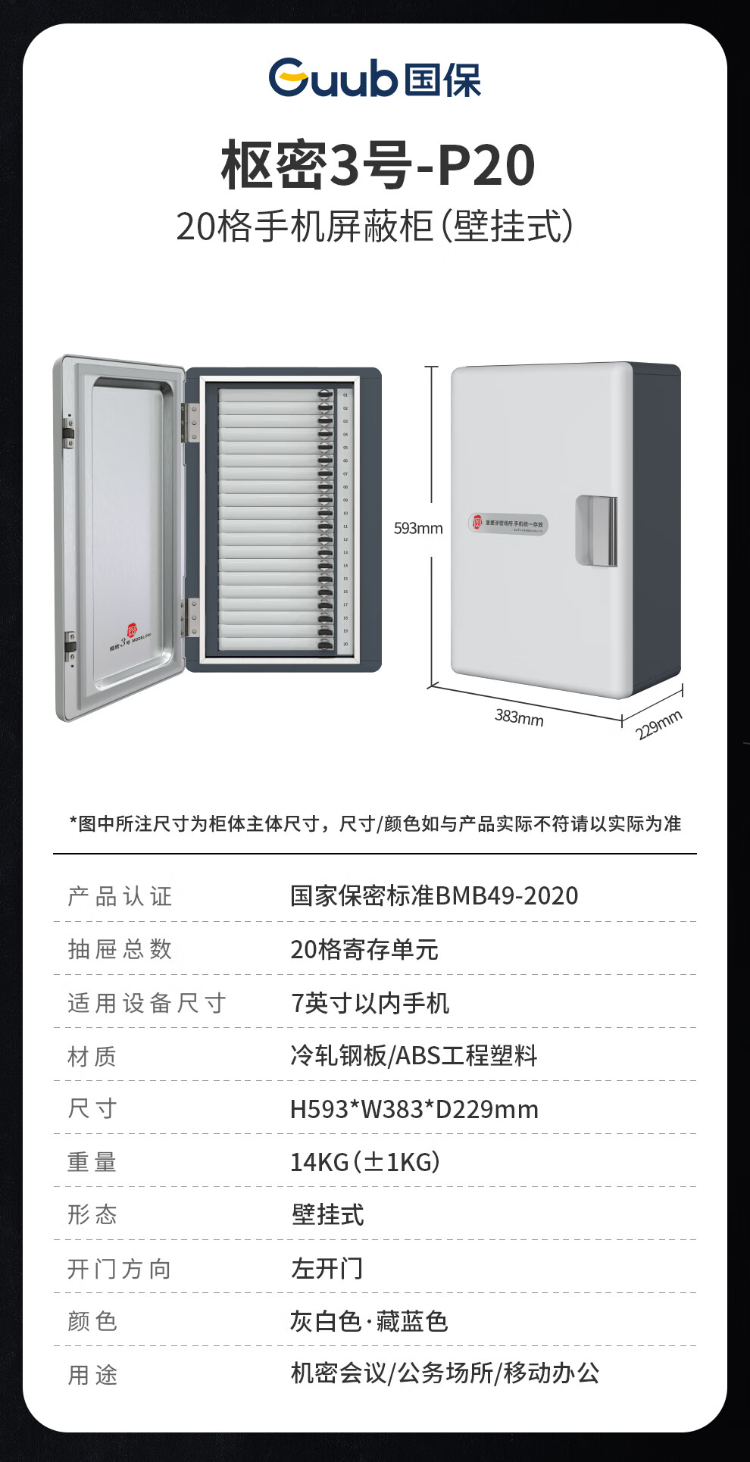 国保(Guub)手机屏蔽柜20格(壁挂式)保密认证会议5G信号屏蔽存放保密柜P20